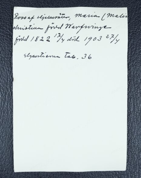 Roos af Hjelmsäter, Maria (MALIN) Christina, född Hvarfving (Warfvinge). Född 1822-04-17. Död 1903-04-27.