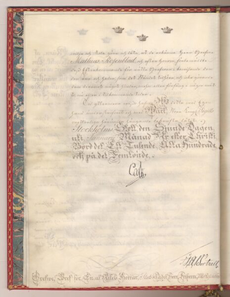 Grevebrevet i original för utdöda grevliga ätten Rosenblad, nr 123.