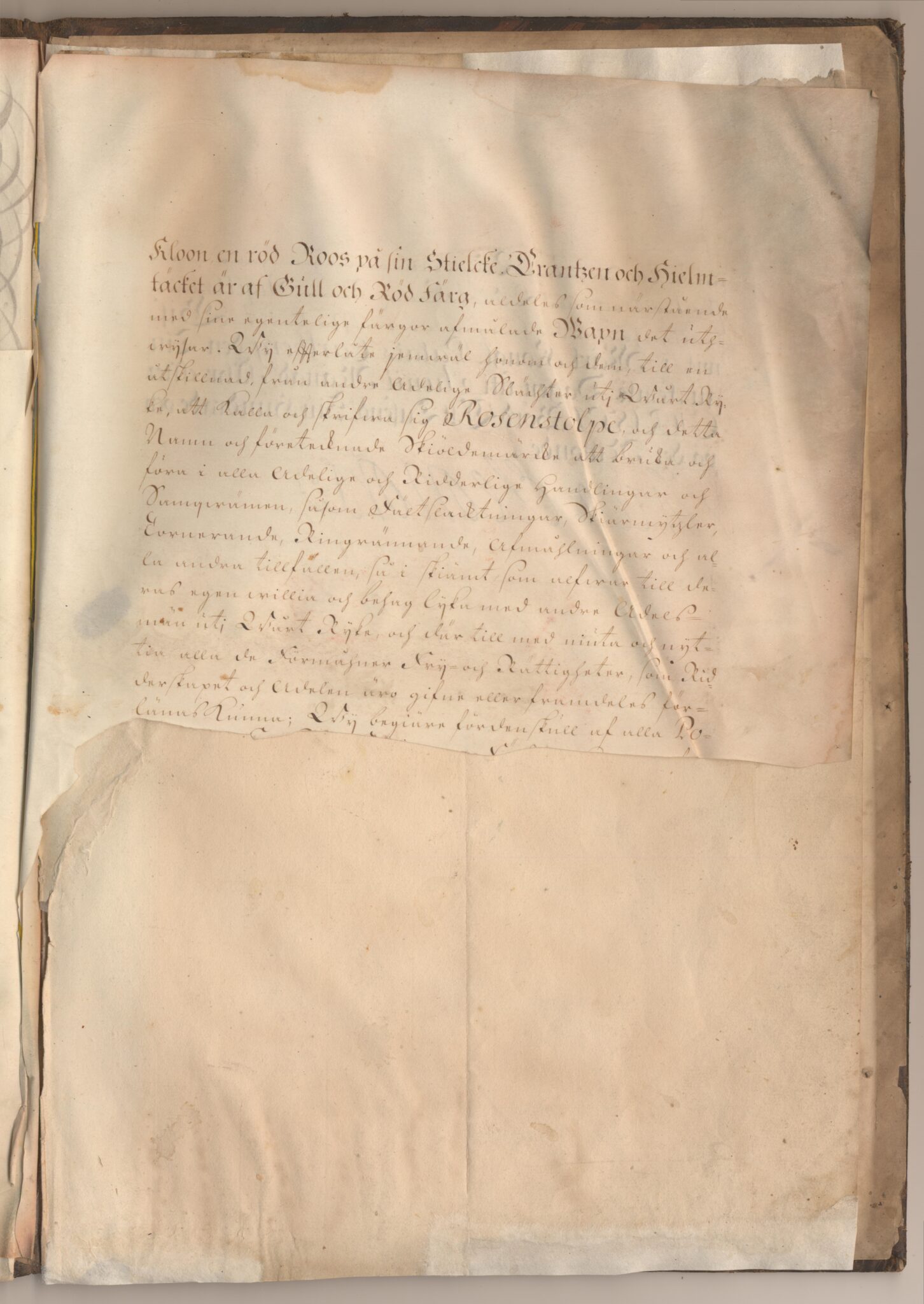 Sköldebrevet i original för utdöda adliga ätten Rosenstolpe, nr 1622.