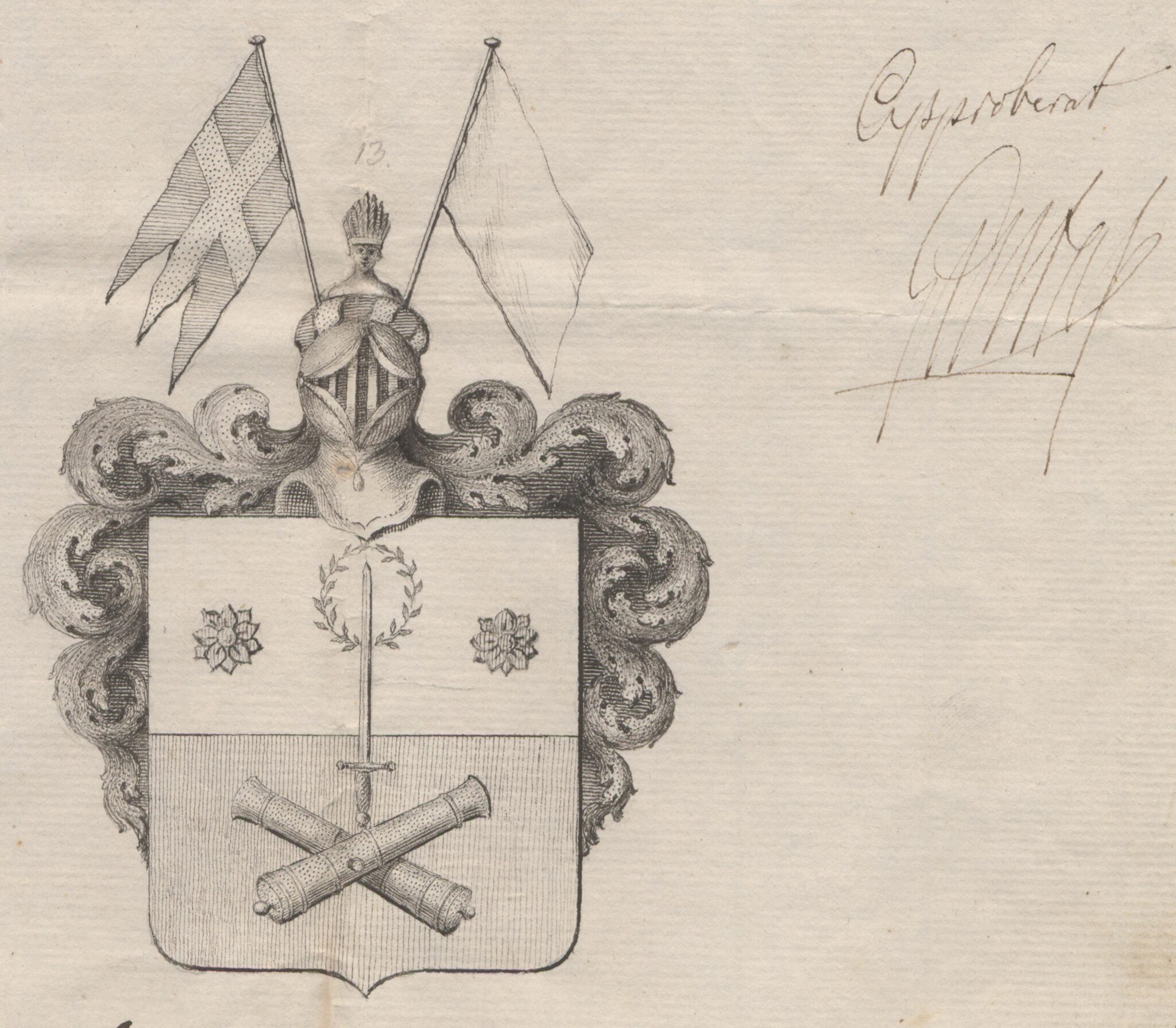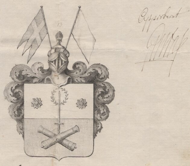 Approberad vapenritning för adliga ätten Rosensvärd, nr 2144.