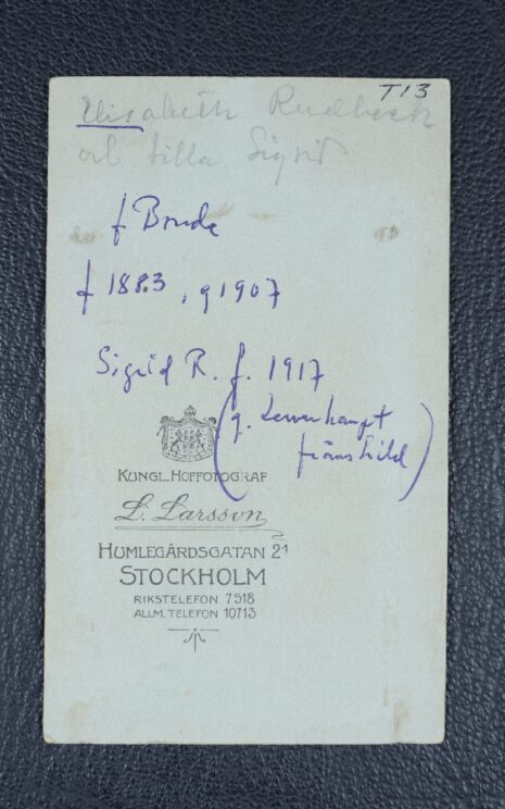 Rudbeck, ELISABET Charlotta Anna Christina, född grevinna Bonde af Björnö, nr 41. Född 1883-06-16. Död 1979-03-18.