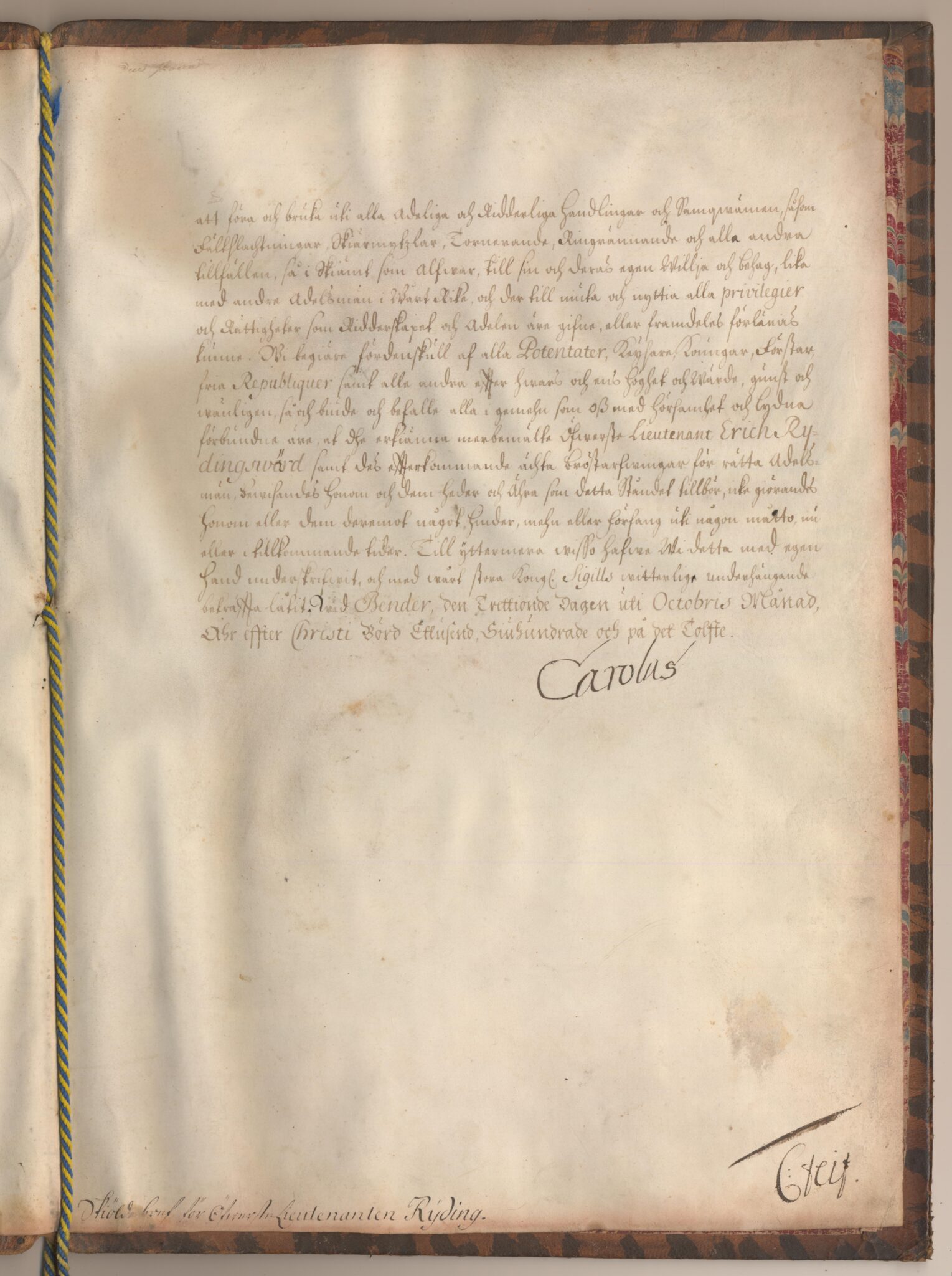 Utnämnd och utfärdat: Karl XII, Bender, 1712-10-30.