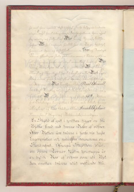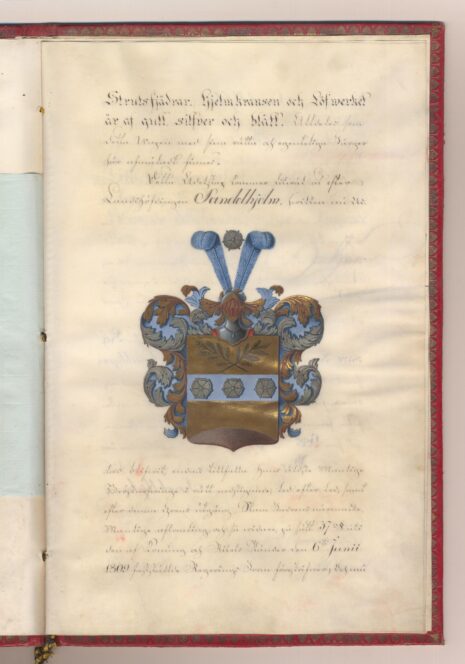 Sköldebrevet i original för utdöda adliga ätten Sandelhjelm, nr 2300.