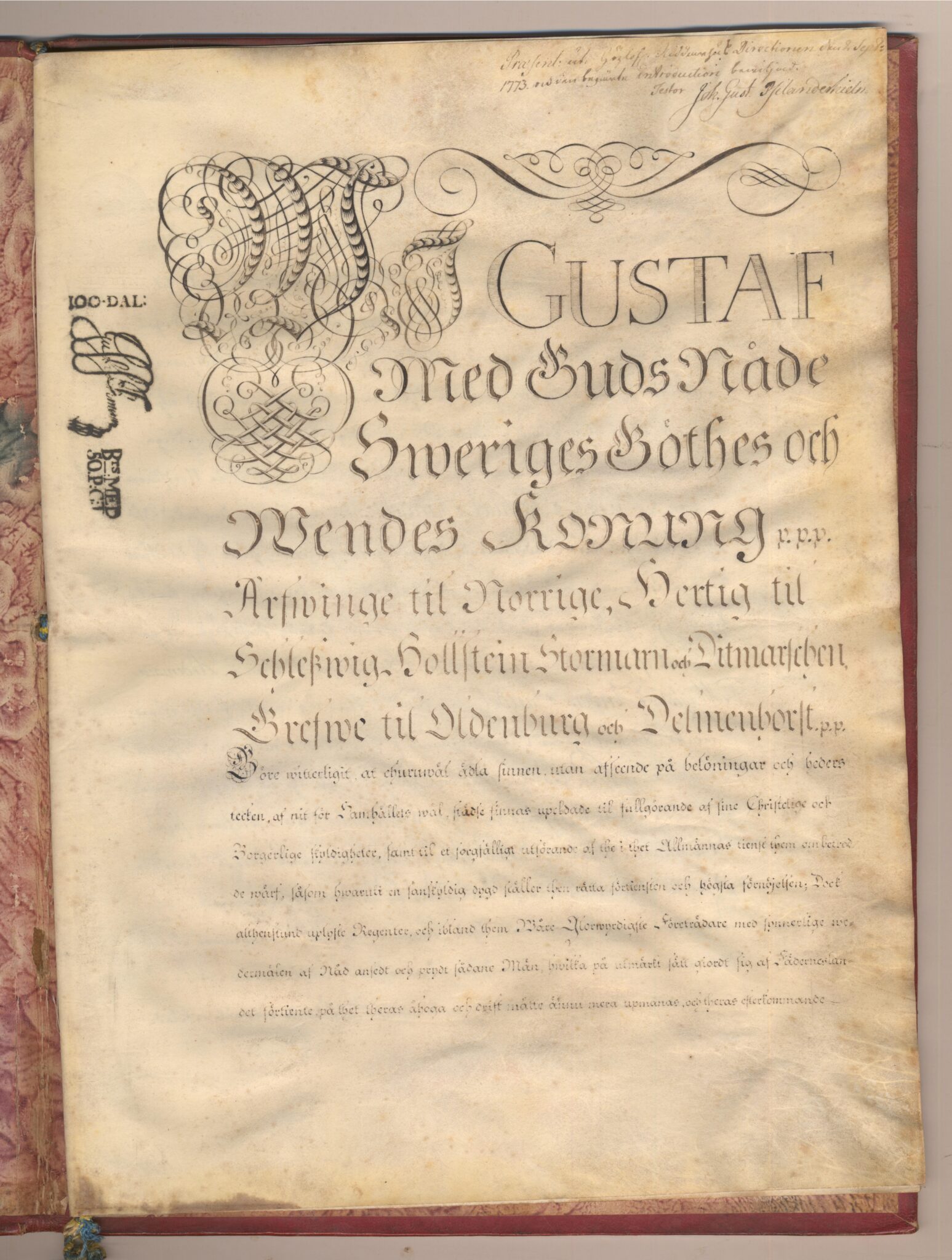 1. Resolution på adelskap, 1772-05-29, Stockholm, Gustav III.