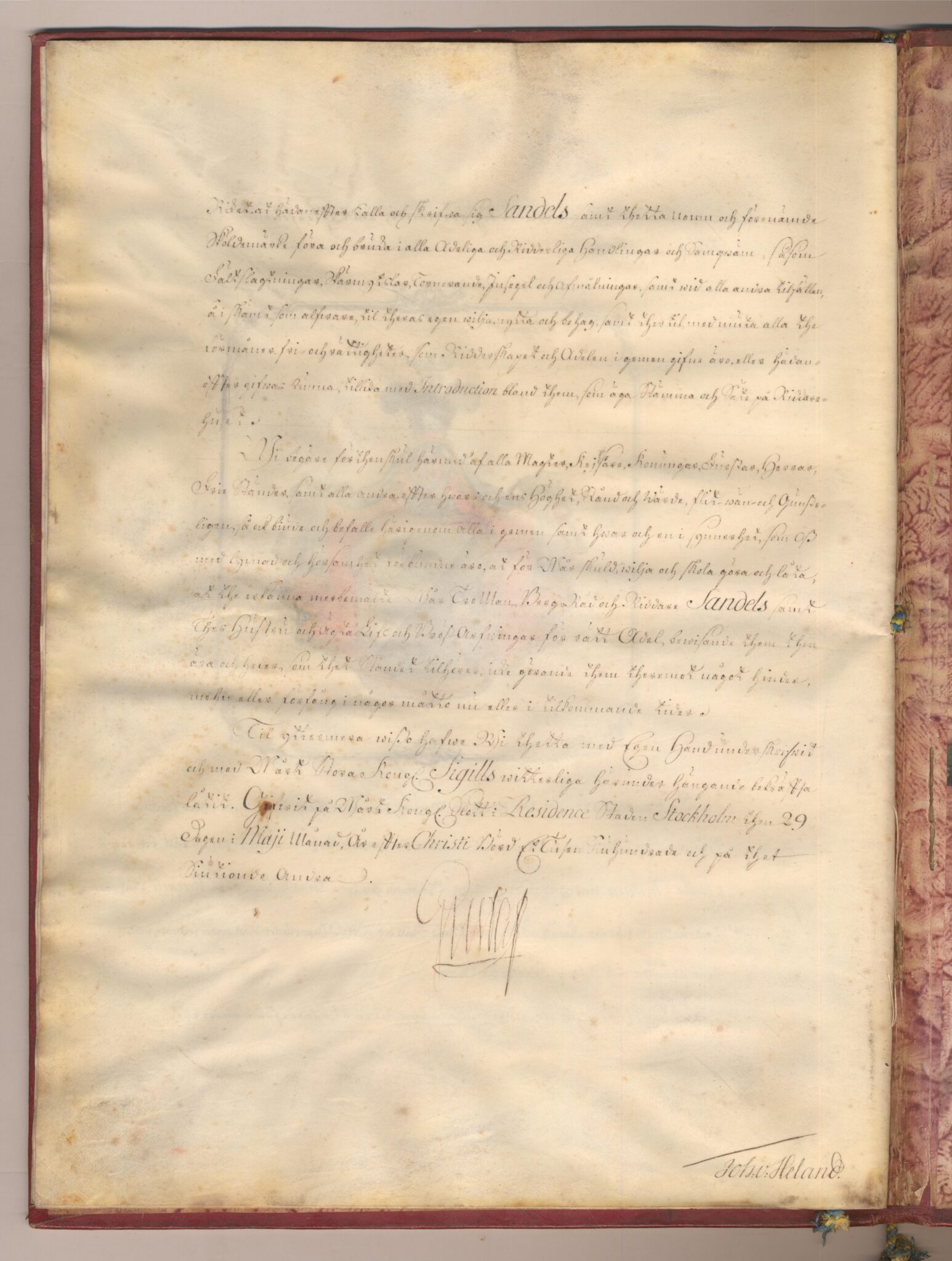 Sköldebrevet i original för adliga ätten Sandels, nr 2006.