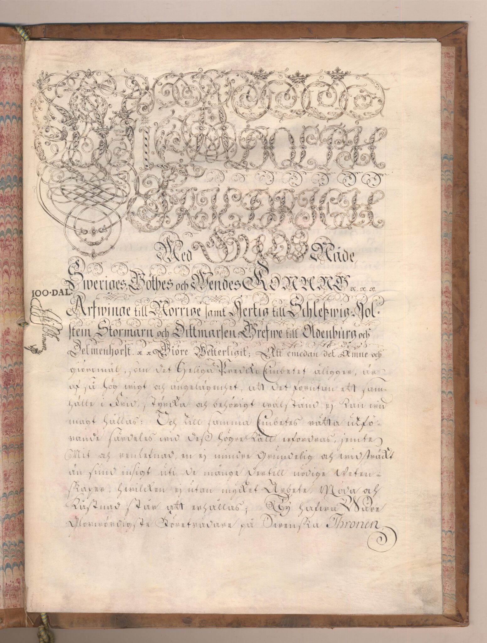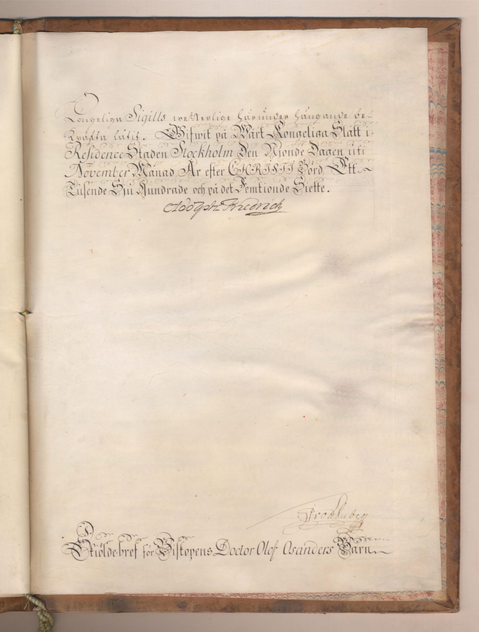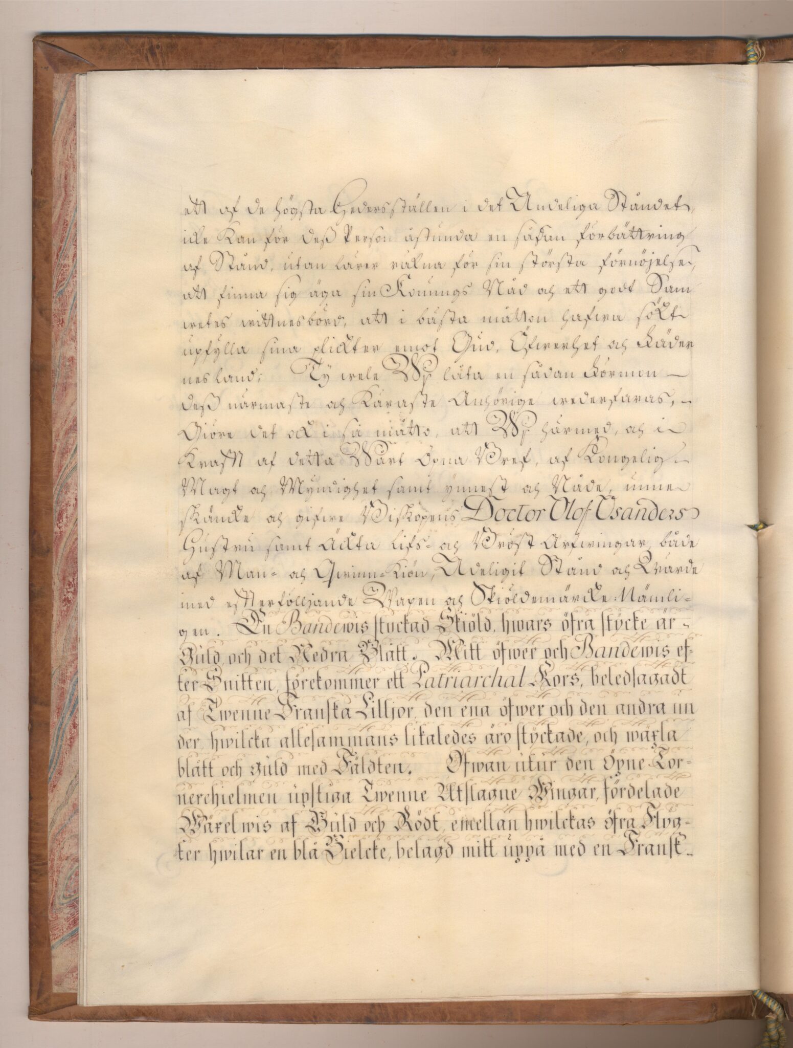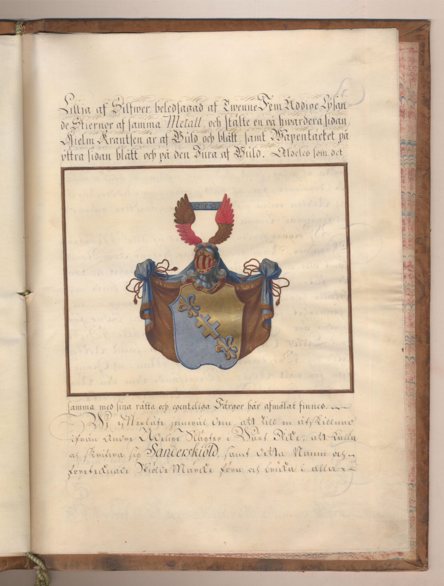 Sköldebrevet i original för utdöda adliga ätten Sanderskiöld, nr 2040.
