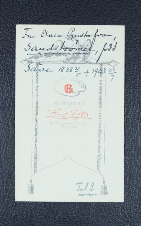Sandströmer, CLARA Gustava, född Säve. Född 1838-05-21. Död 1903-07-23.
