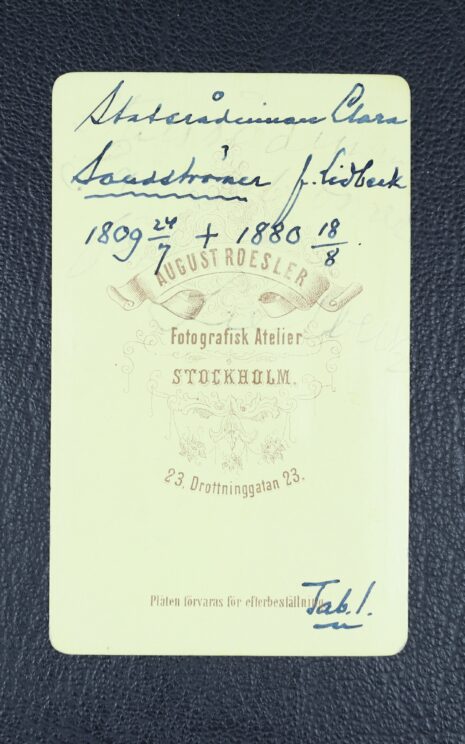 Sandströmer, CLARA, född Lidbeck. Född 1809-07-24. Död 1880-08-18.