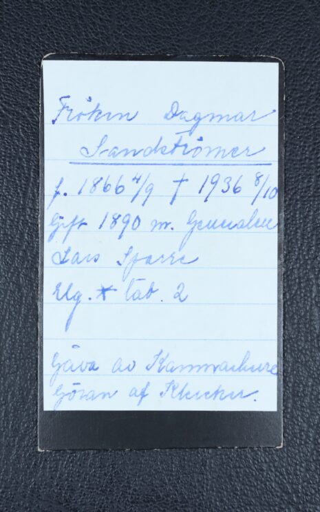 Sandströmer, DAGMAR, gift friherrinna Sparre, nr 11. Född 1866-09-04. Död 1936-10-08.