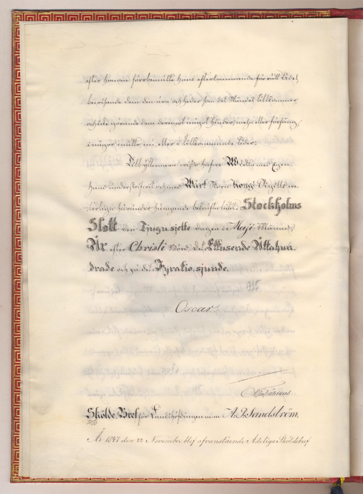Utnämnd och utfärdat: Oscar I, Stockholms slott, 1847-05-26.