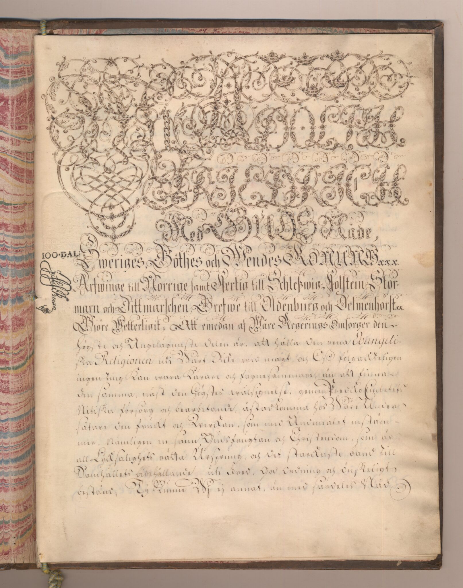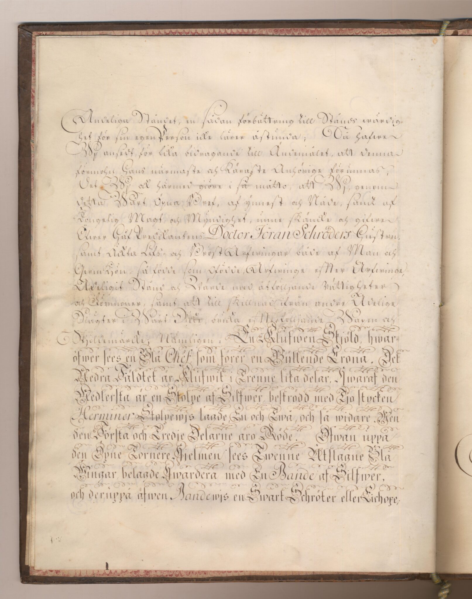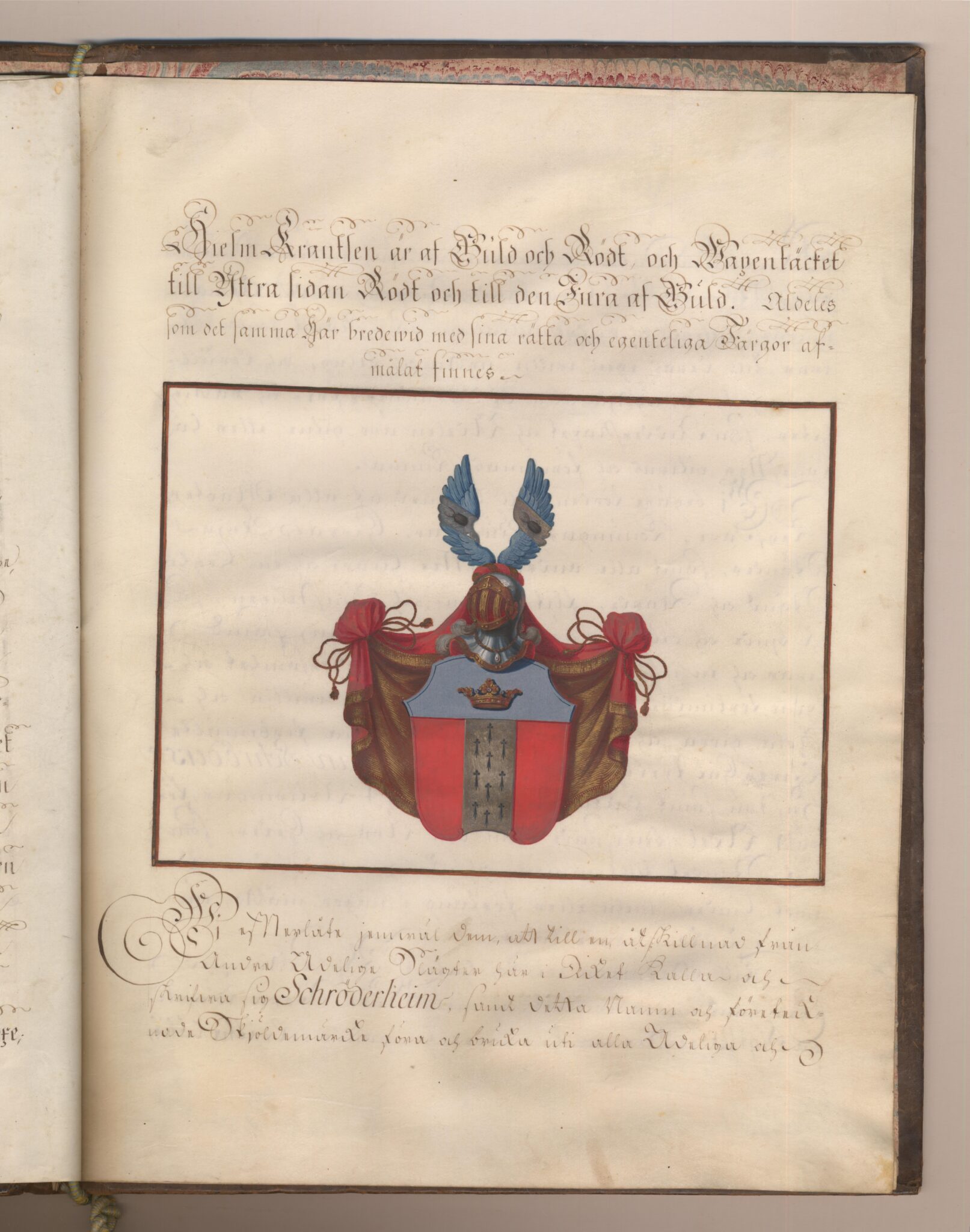 Sköldebrevet i original för adliga ätten Schröderheim, nr 2046 B.