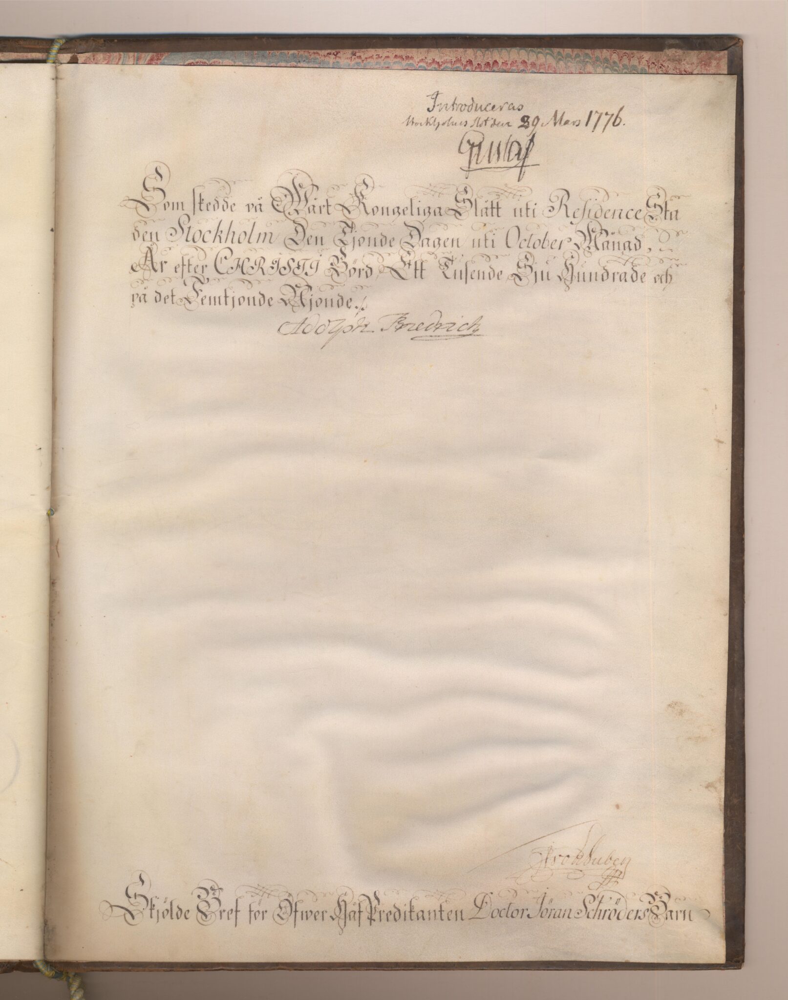 Utnämnd och utfärdat: Adolf Fredrik, Stockholms slott, 1759-10-10.