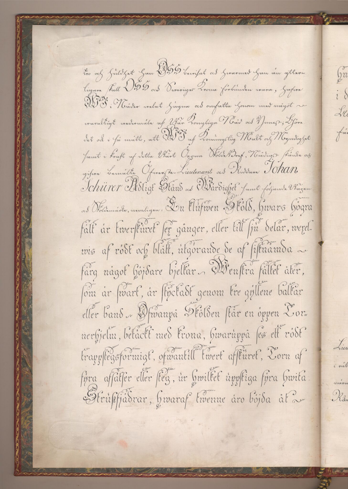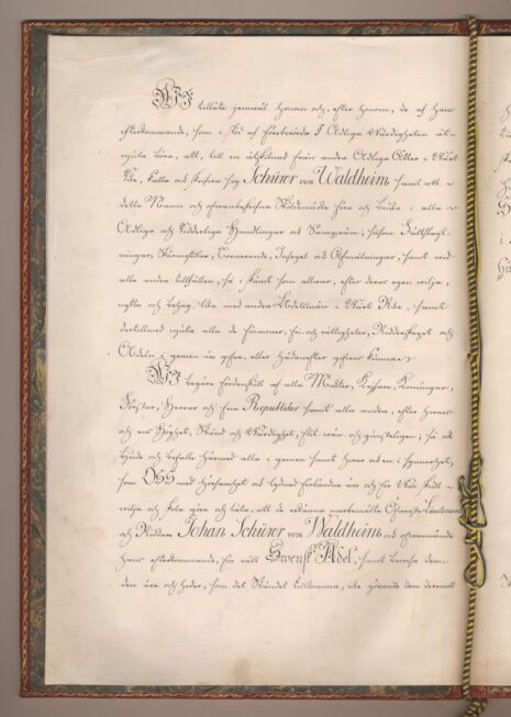 Sköldebrevet i original för adliga ätten Schürer von Waldheim, nr 2201.