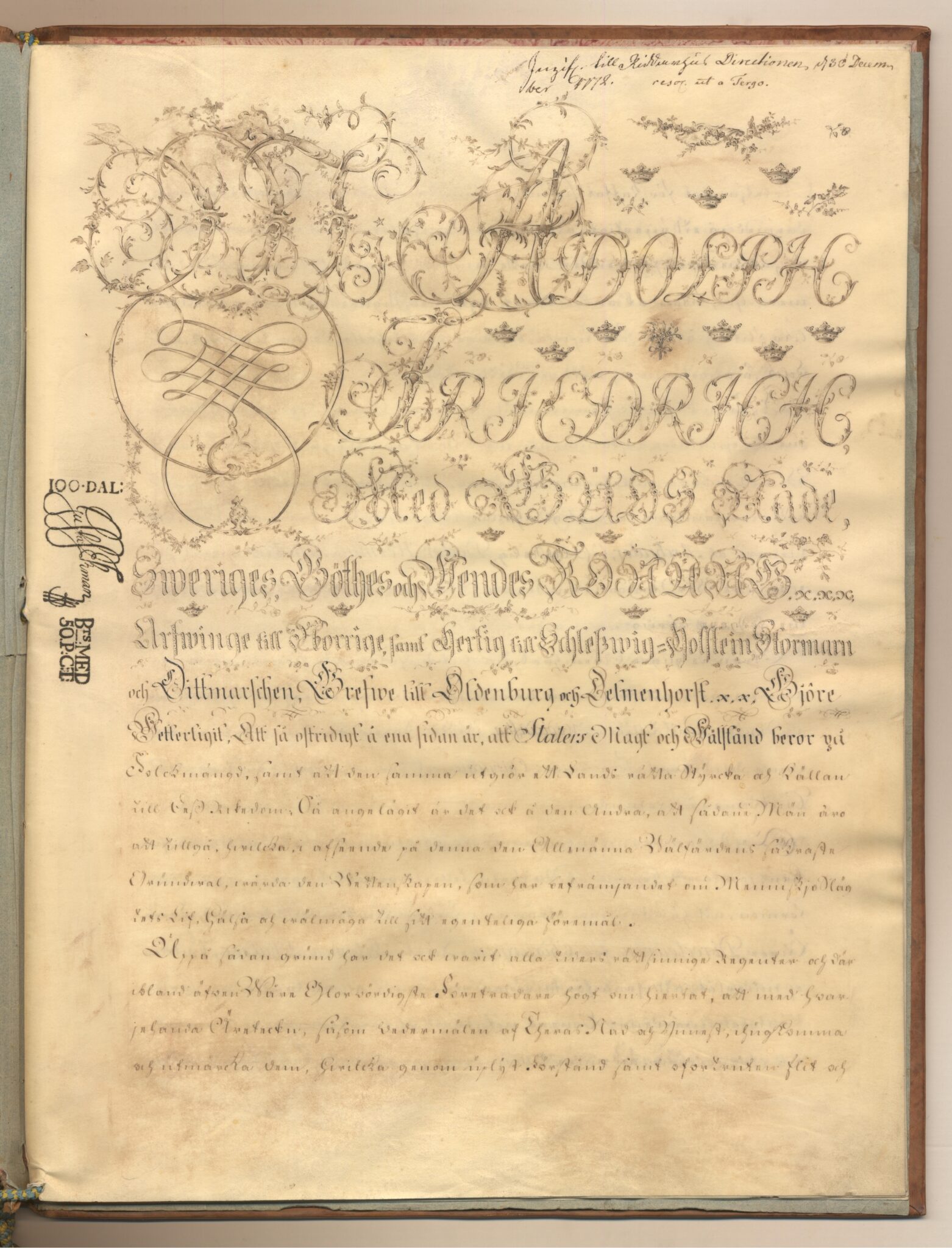 Utfärdat: Gustav III, plats och datum ej angivet.