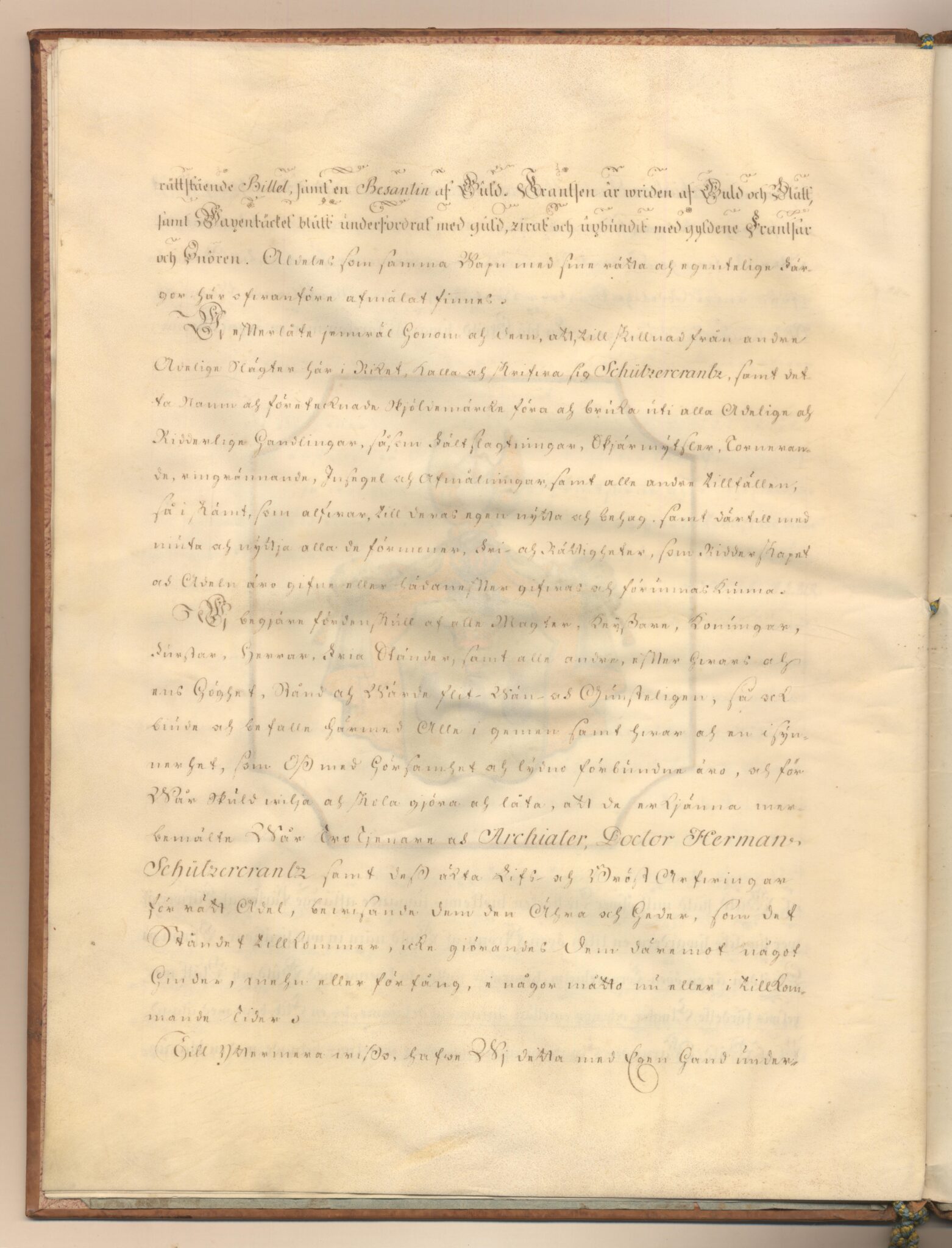 Sköldebrevet i original för utdöda adliga ätten Schützercrantz, nr 1984.
