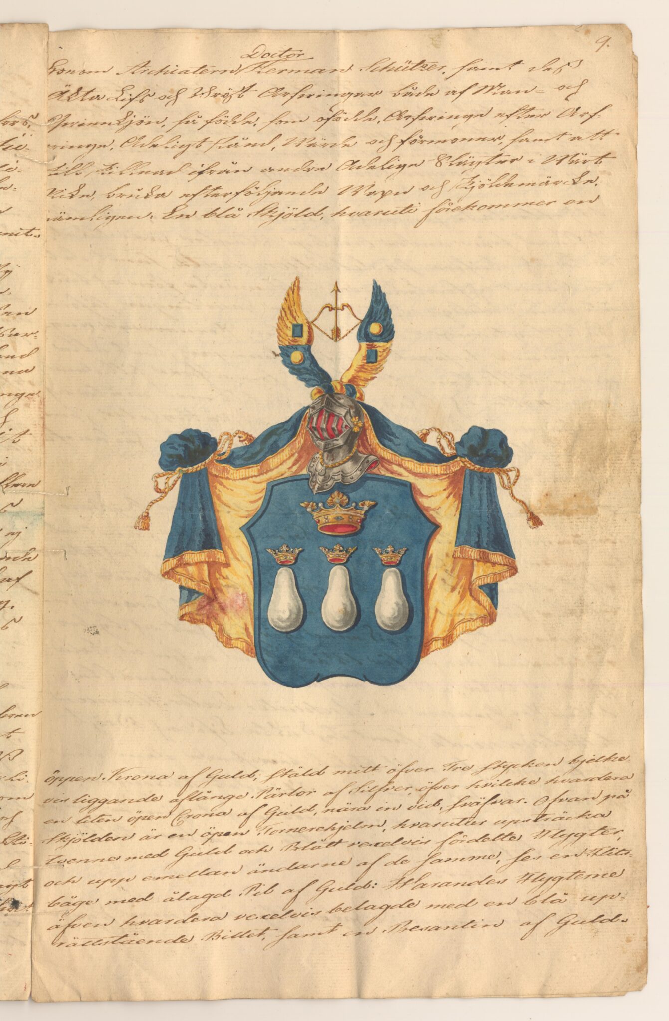 Sköldebrevskopia för utdöda adliga ätten Schützercrantz, nr 1984.