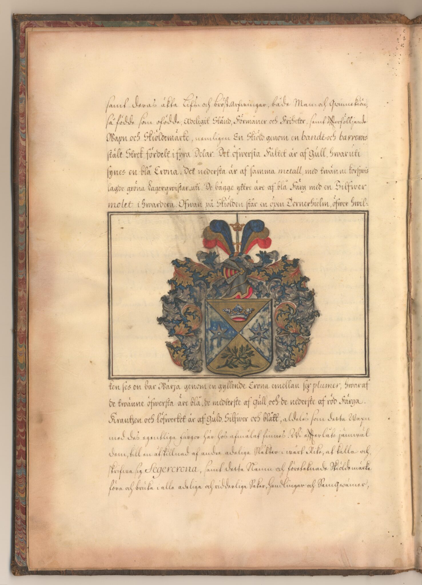 Sköldebrevet i original för utdöda adliga ätten Segercrona, nr 1649.