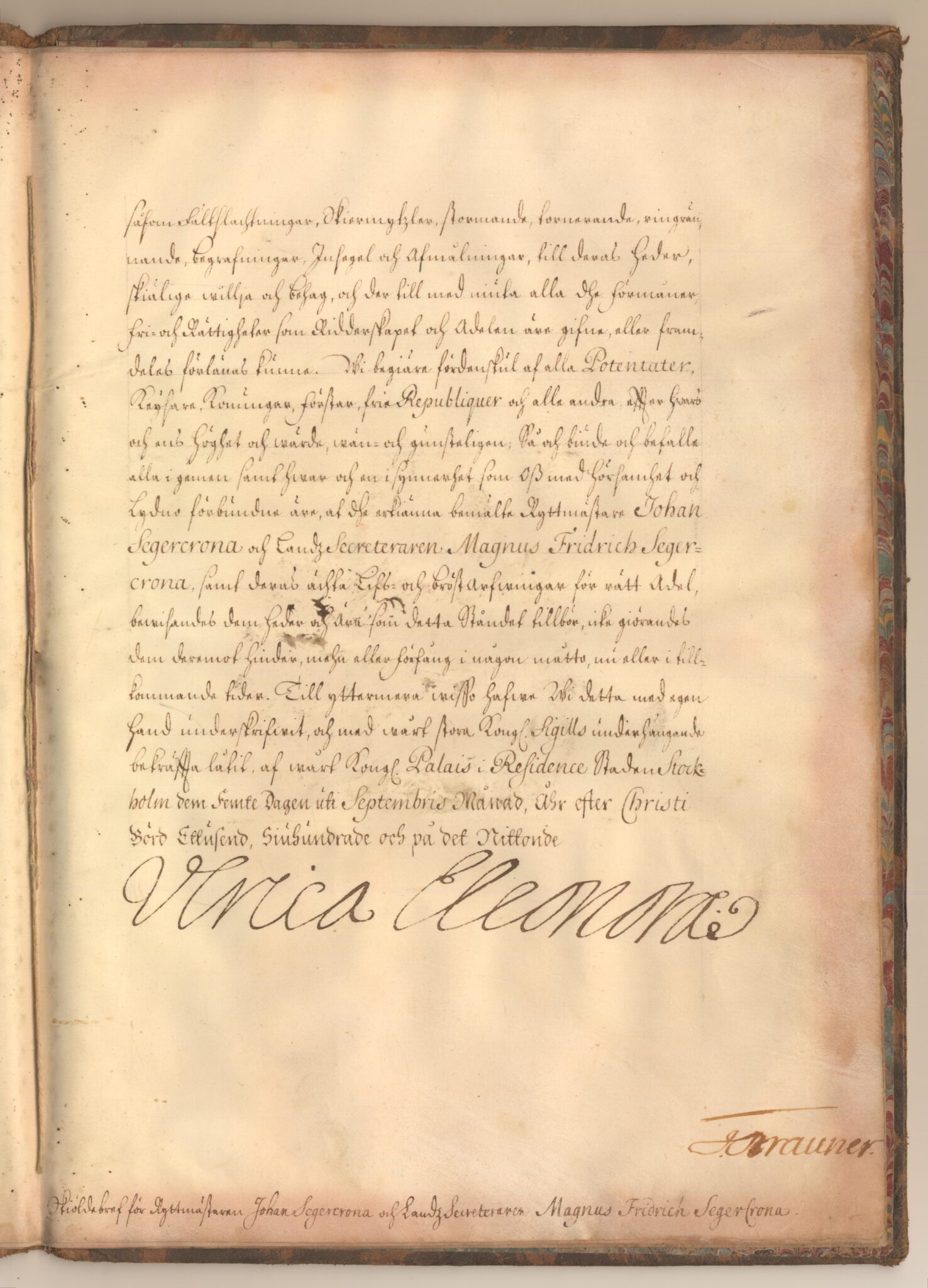 Utnämnd och utfärdat: Ulrika Eleonora d y, Palatset i Stockholm, 1719-09-15.