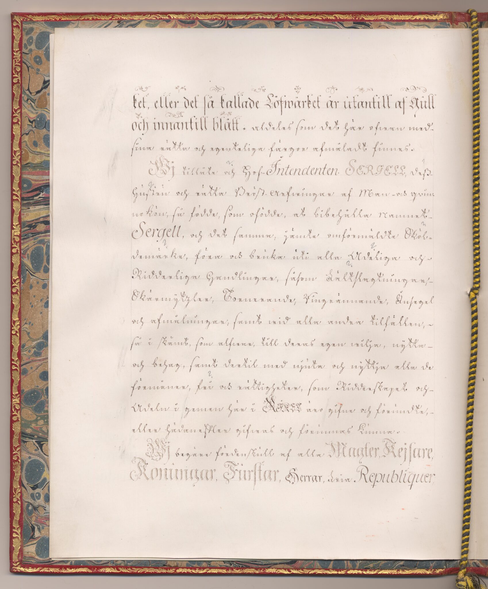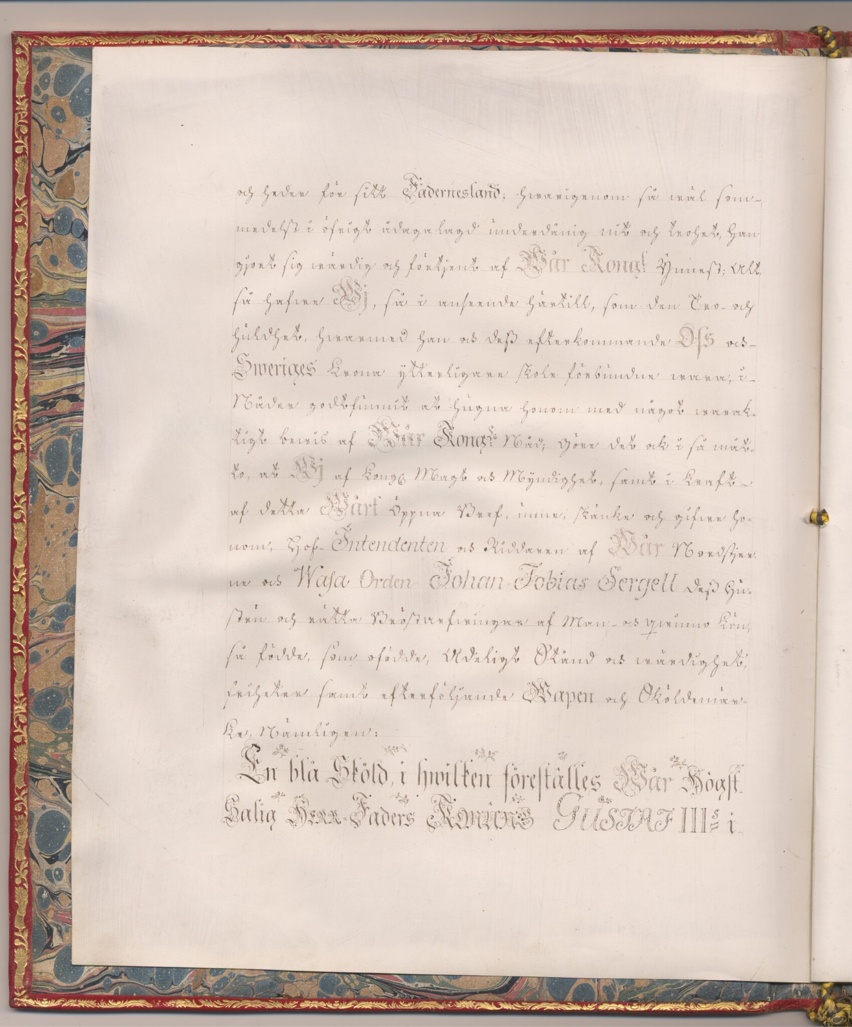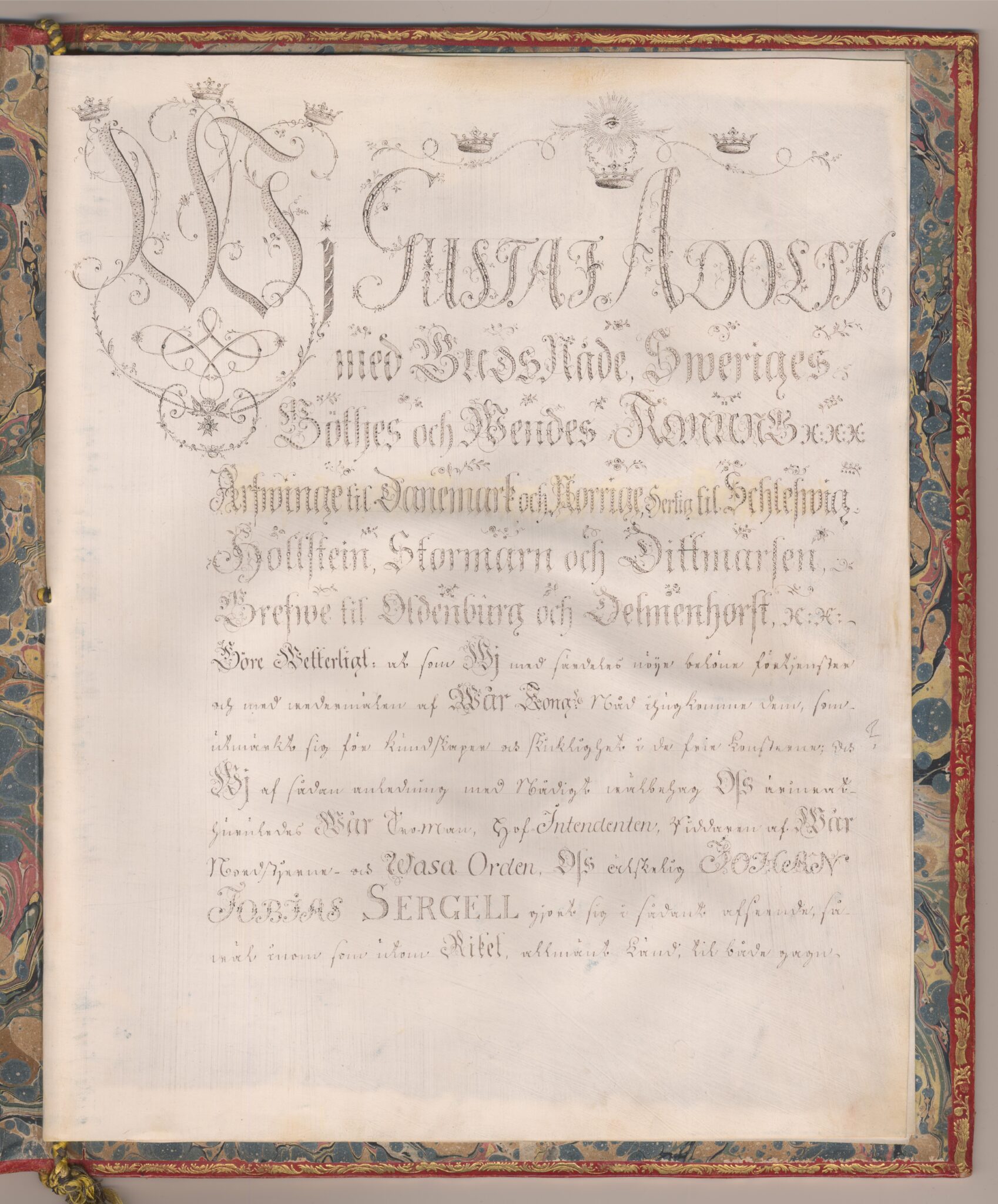 Sköldebrevet i original för adliga ätten Sergel, nr 2213.