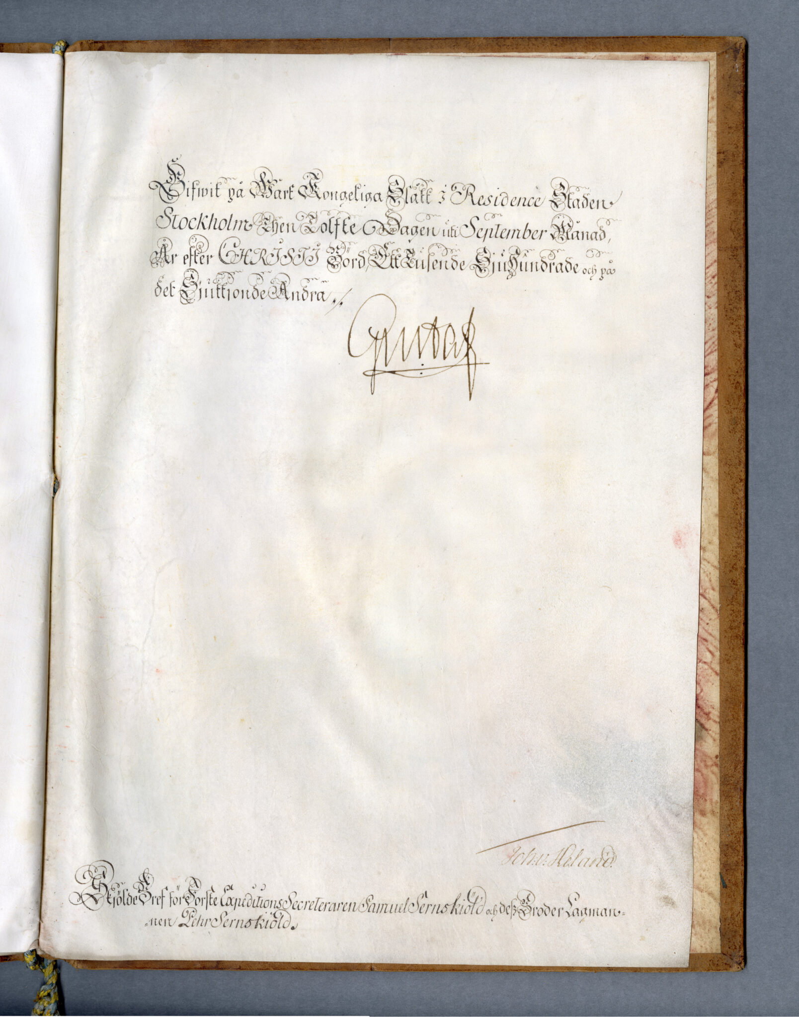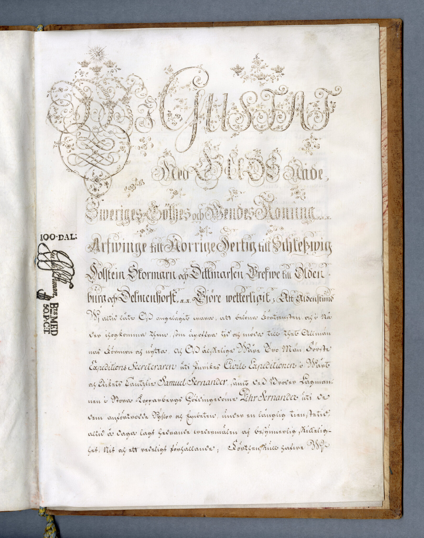 Sköldebrevet i original för utdöda adliga ätten Sernsköld, nr 2027.