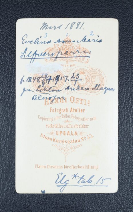 Silfversparre, Anna Maria EVELINA, gift Petersson. Född 1848-04-28. Död 1917-01-23.