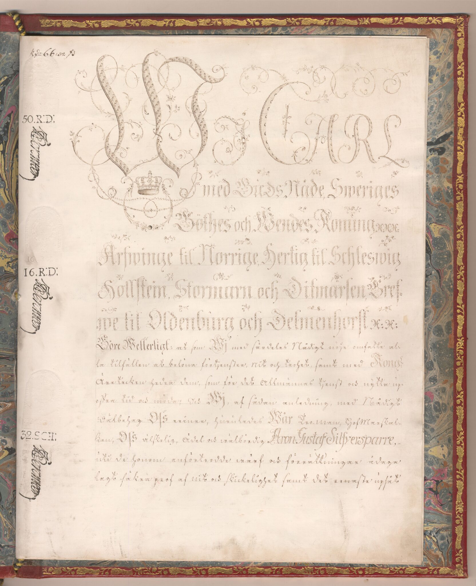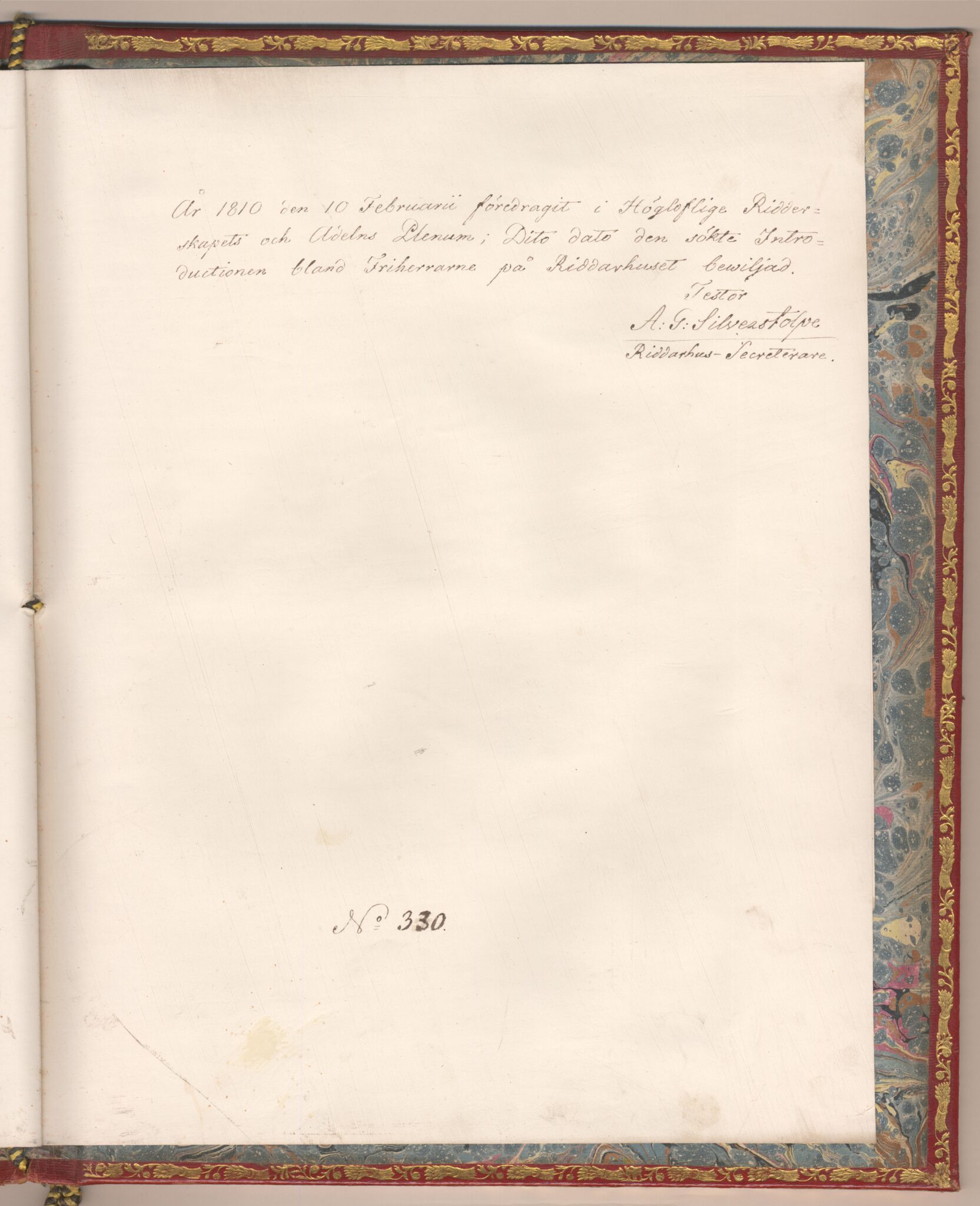 Friherrebrevet i original för friherrliga ätten Silfversparre, nr 330.