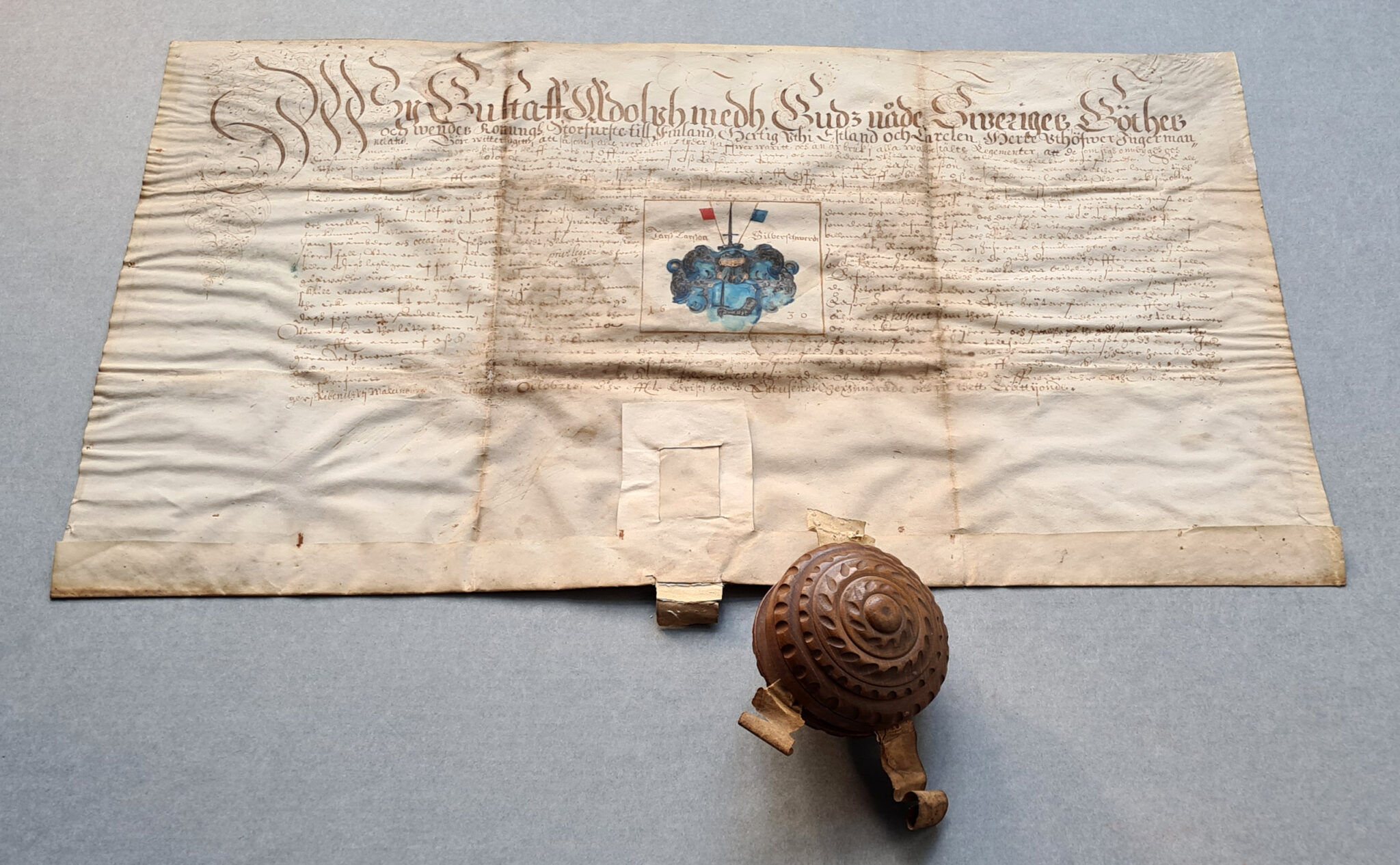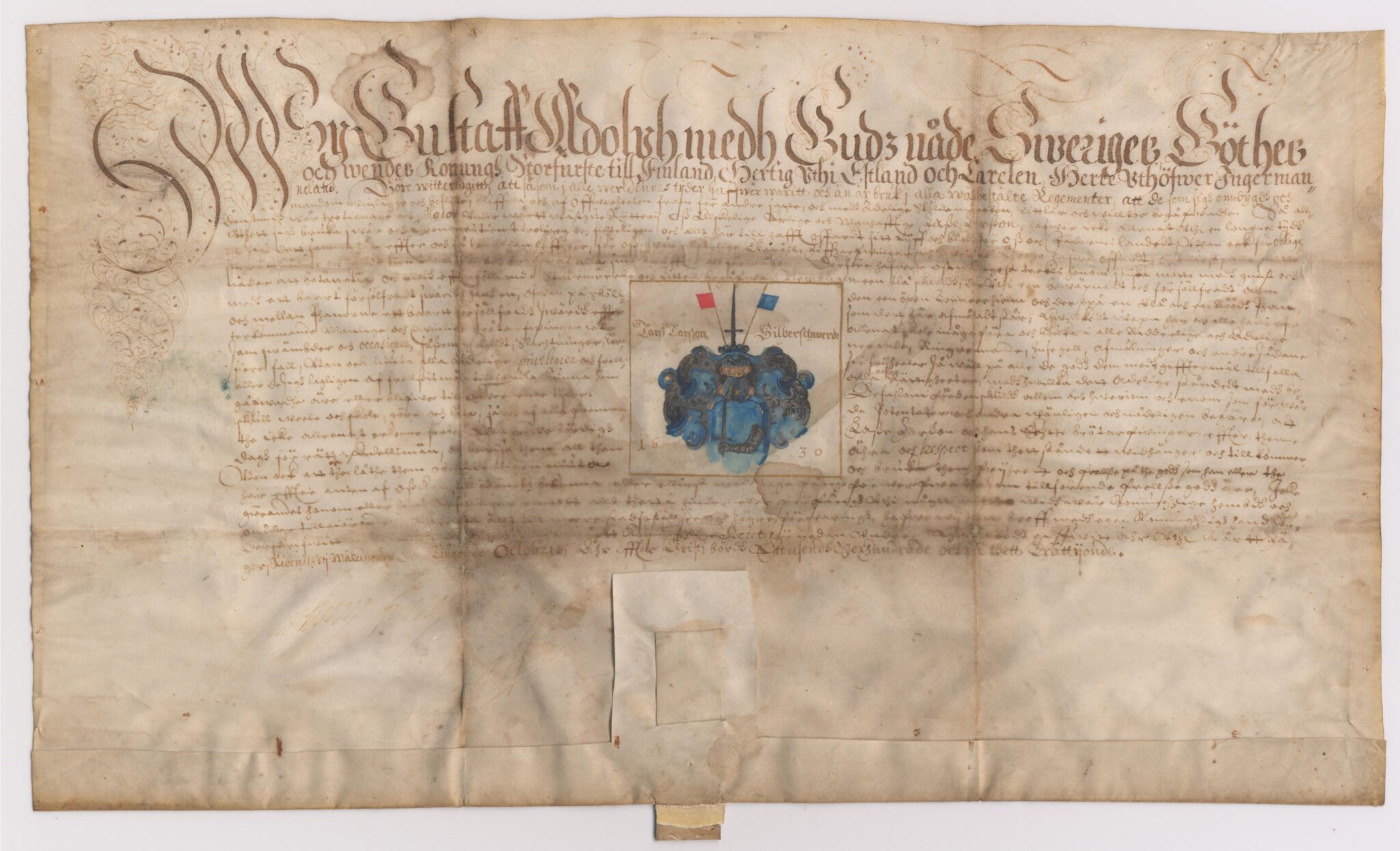 Sköldebrevet i original för adliga ätten Silfverswärd, nr 184.