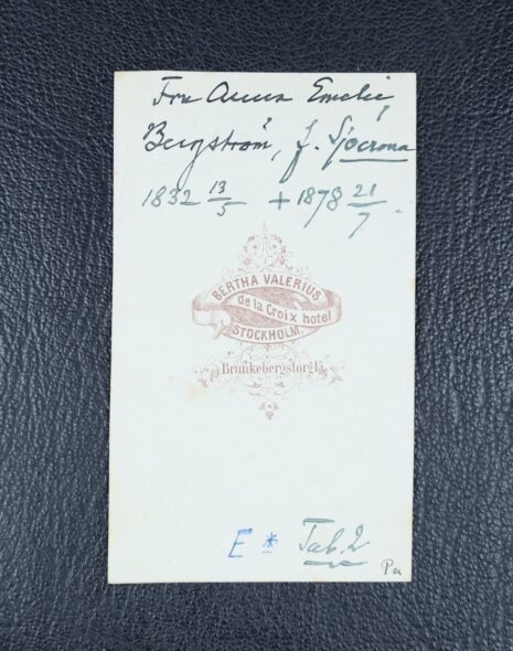 Sjöcrona, ANNA Emelie (Matilda), gift Bergström. Född 1832-05-15. Död 1878-07-21.