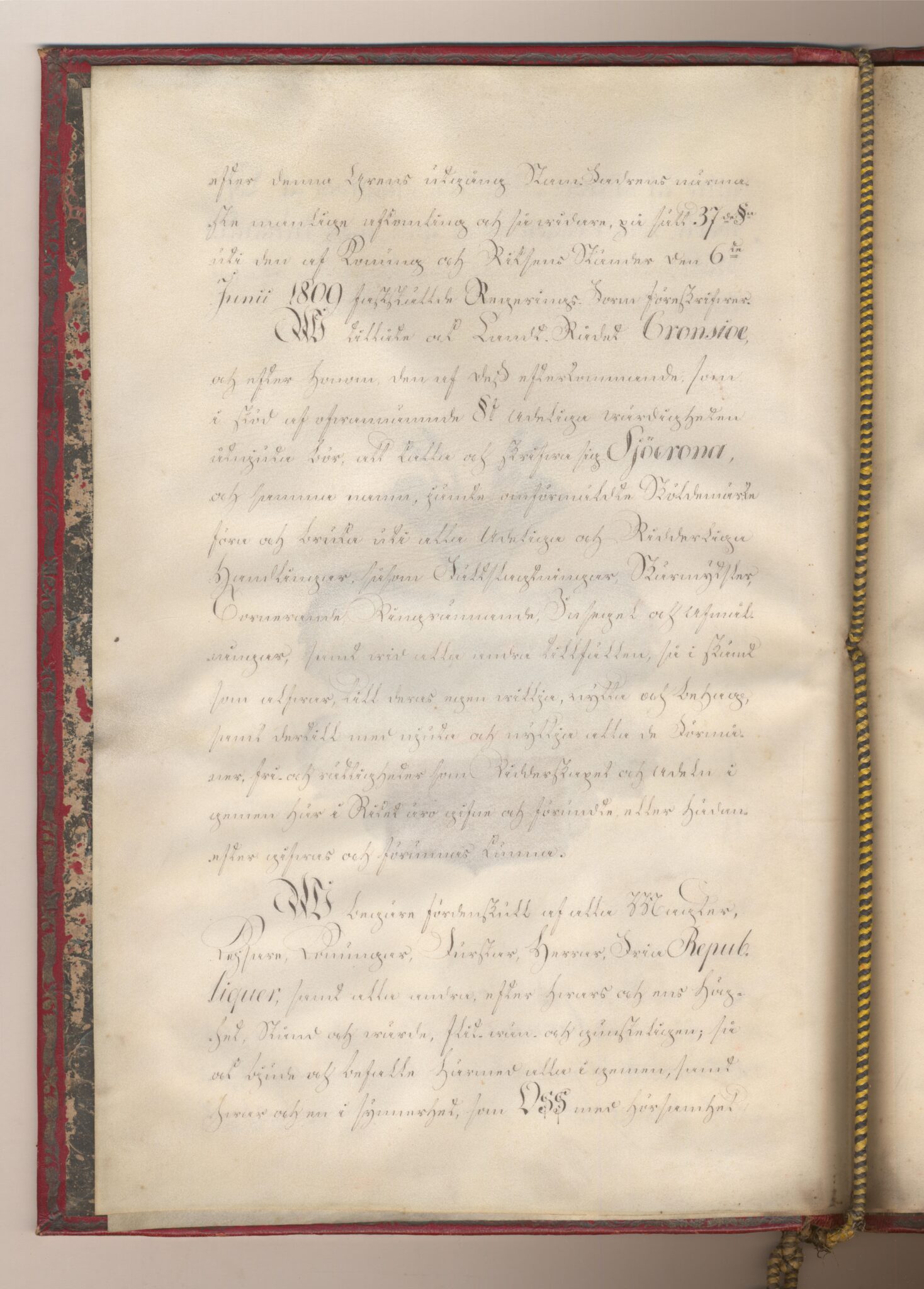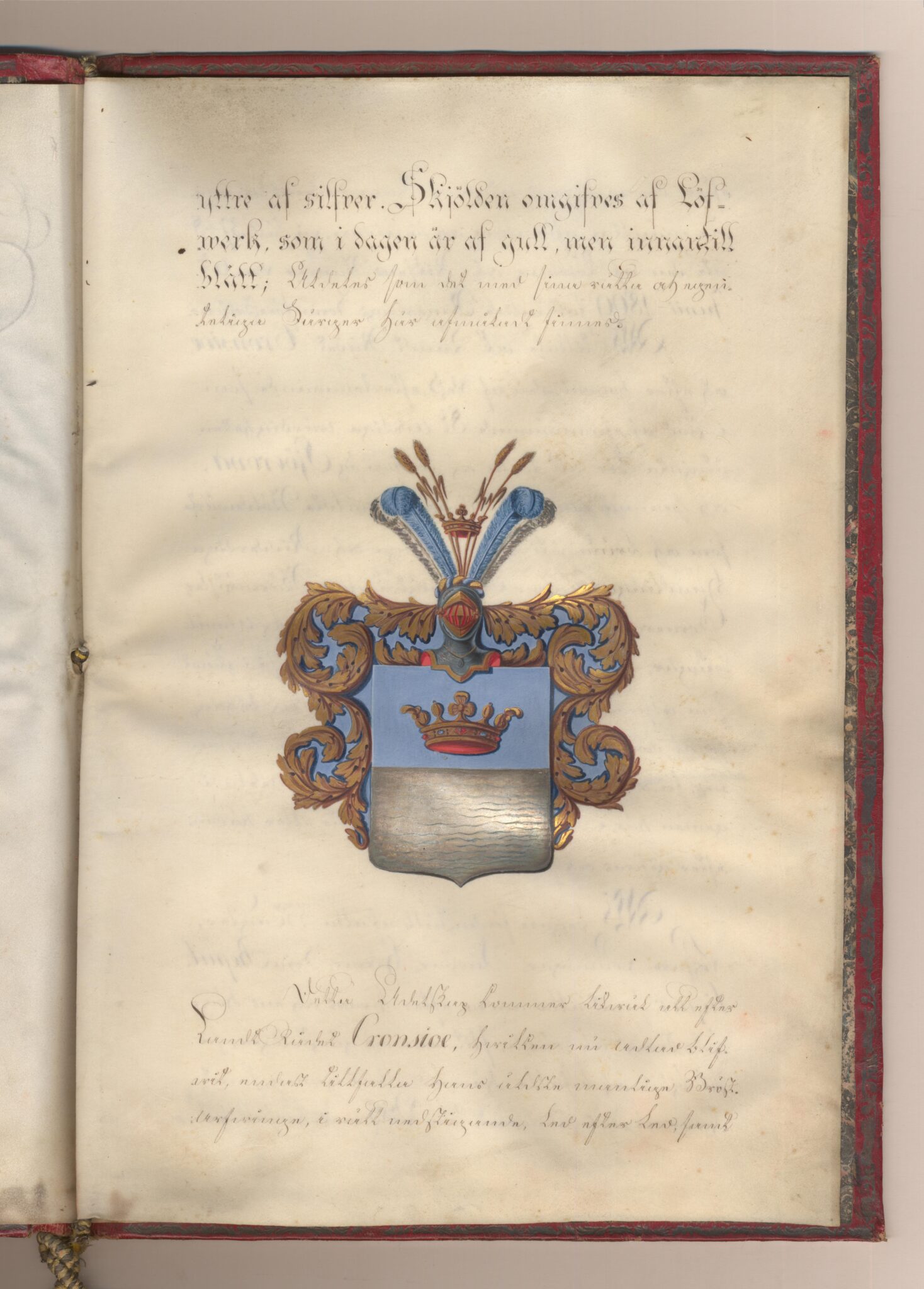 Sköldebrevet i original för adliga ätten Sjöcrona, nr 2273.