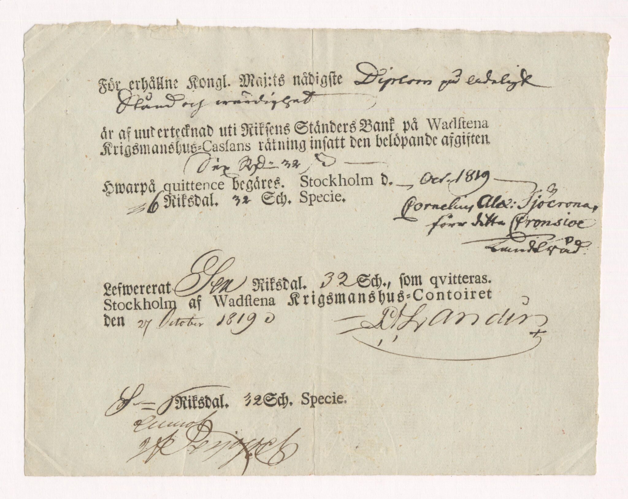 2. Kvittens, 1819-10-27.