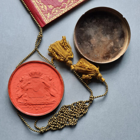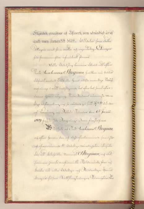 Sköldebrevet i original för utdöda adliga ätten Skogman, nr 2302.