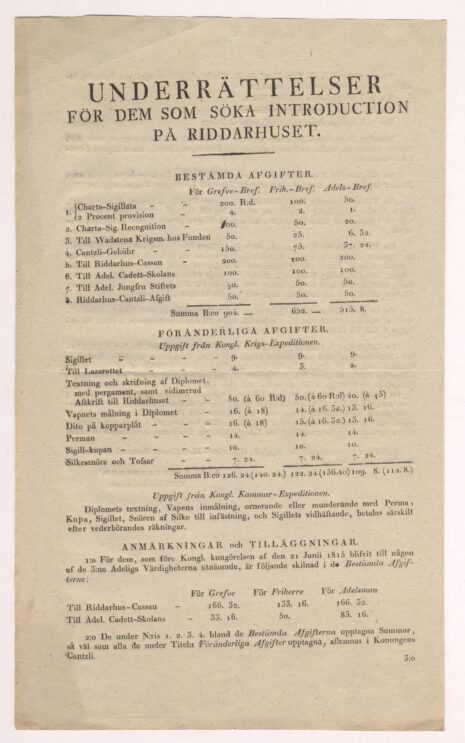 1. Underrättelser för dem som söka introduktion på Riddarhuset.