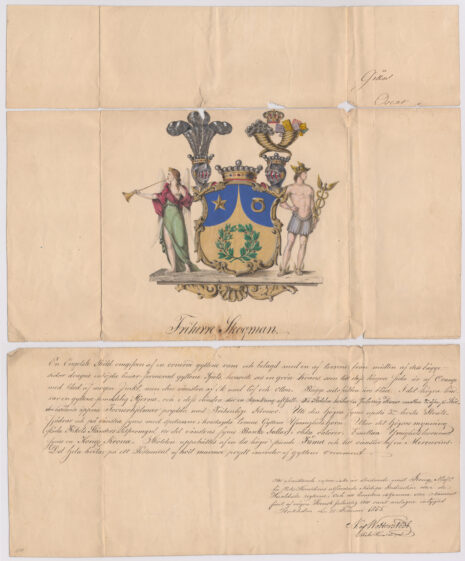 Utförd: Riksheraldiker Niklas Joakim af Wetterstedt, Stockholm, 1855-02-14.
