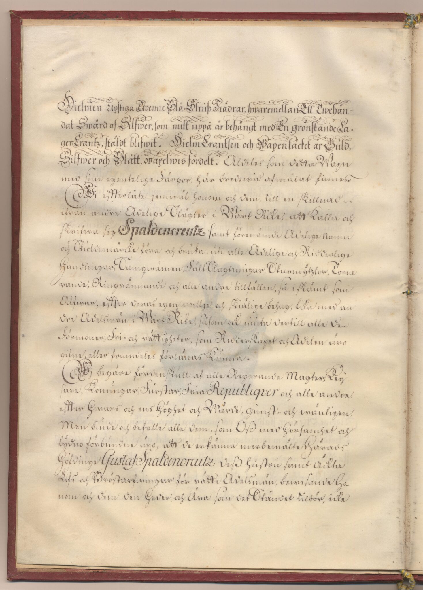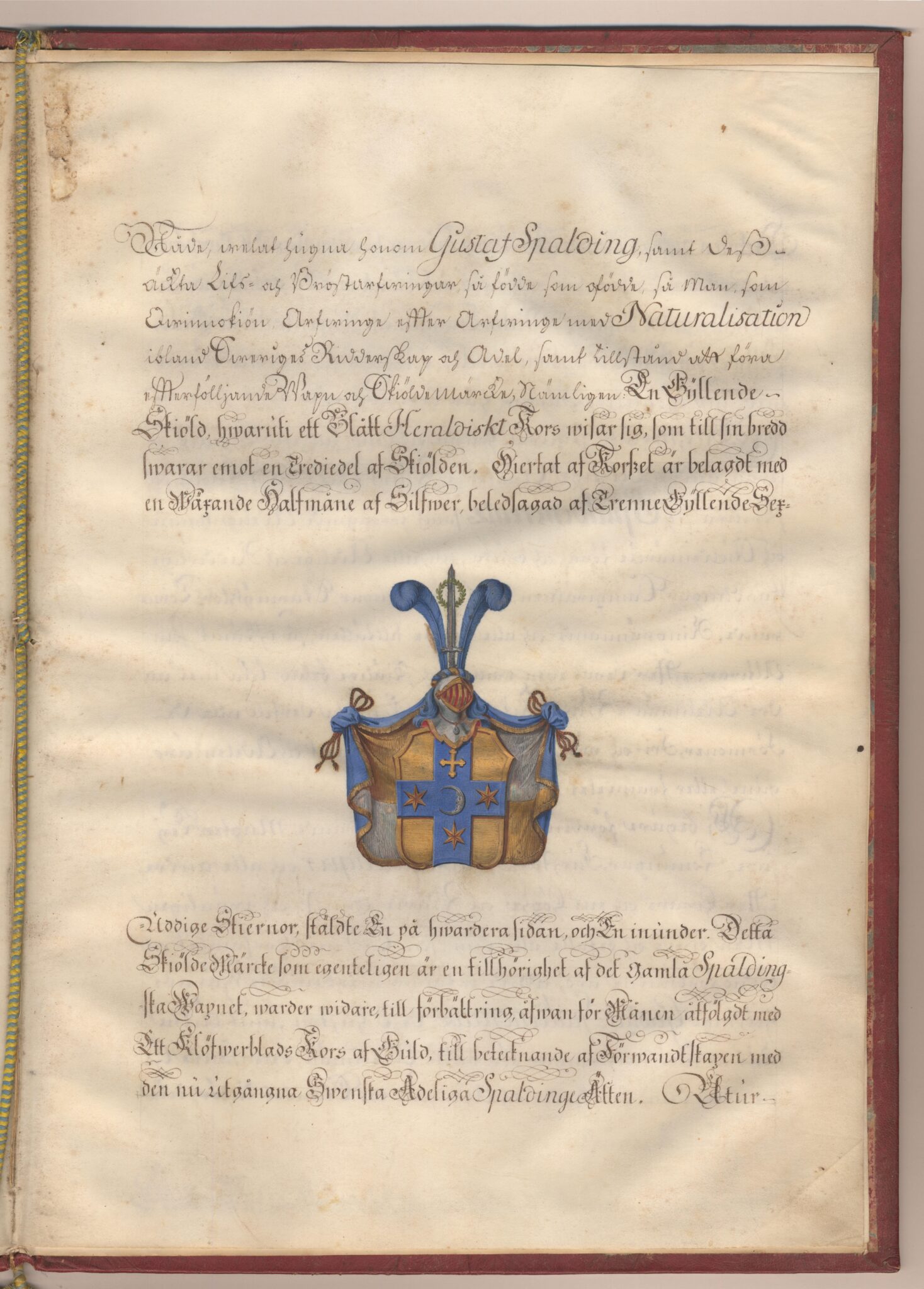 Naturalisationsbrevet i original för adliga ätten Spaldencreutz, nr 1986.