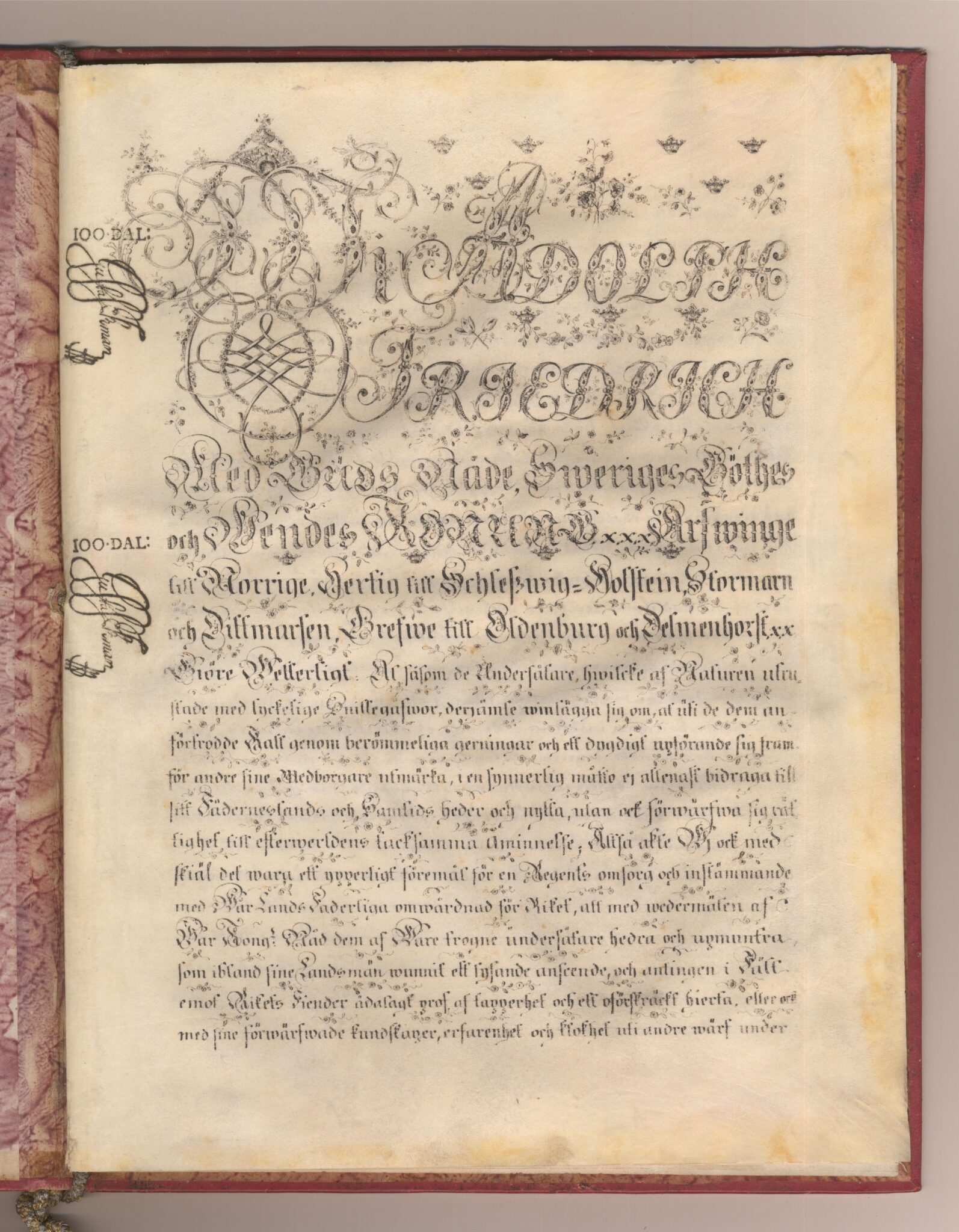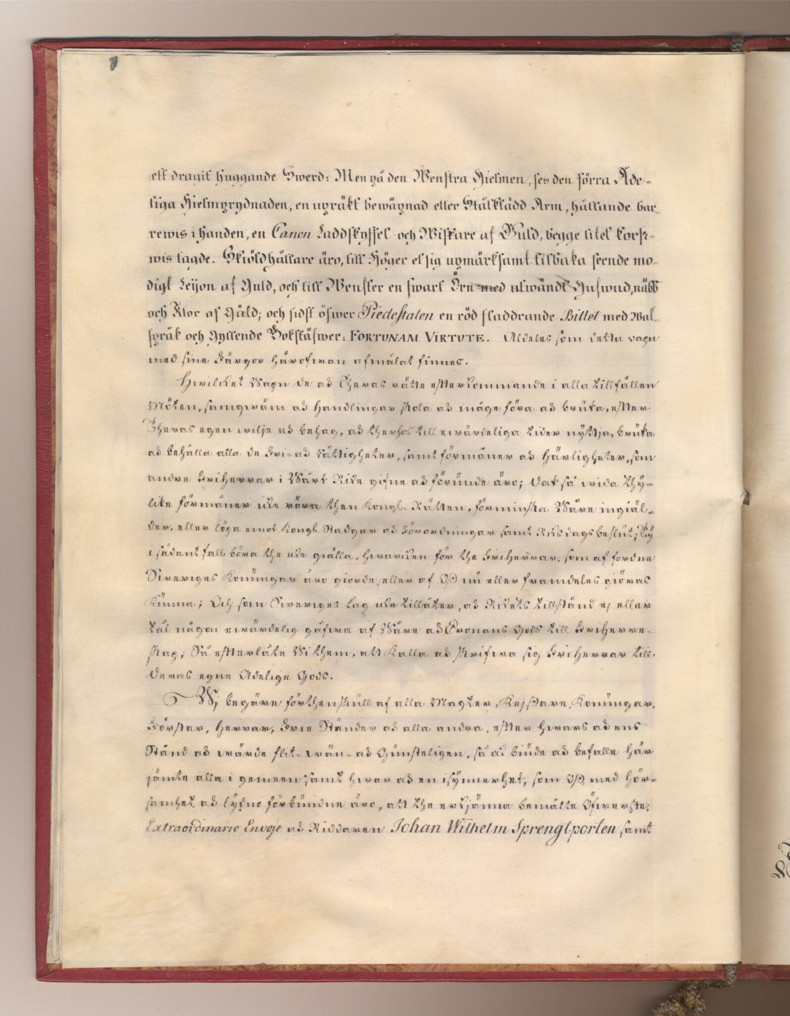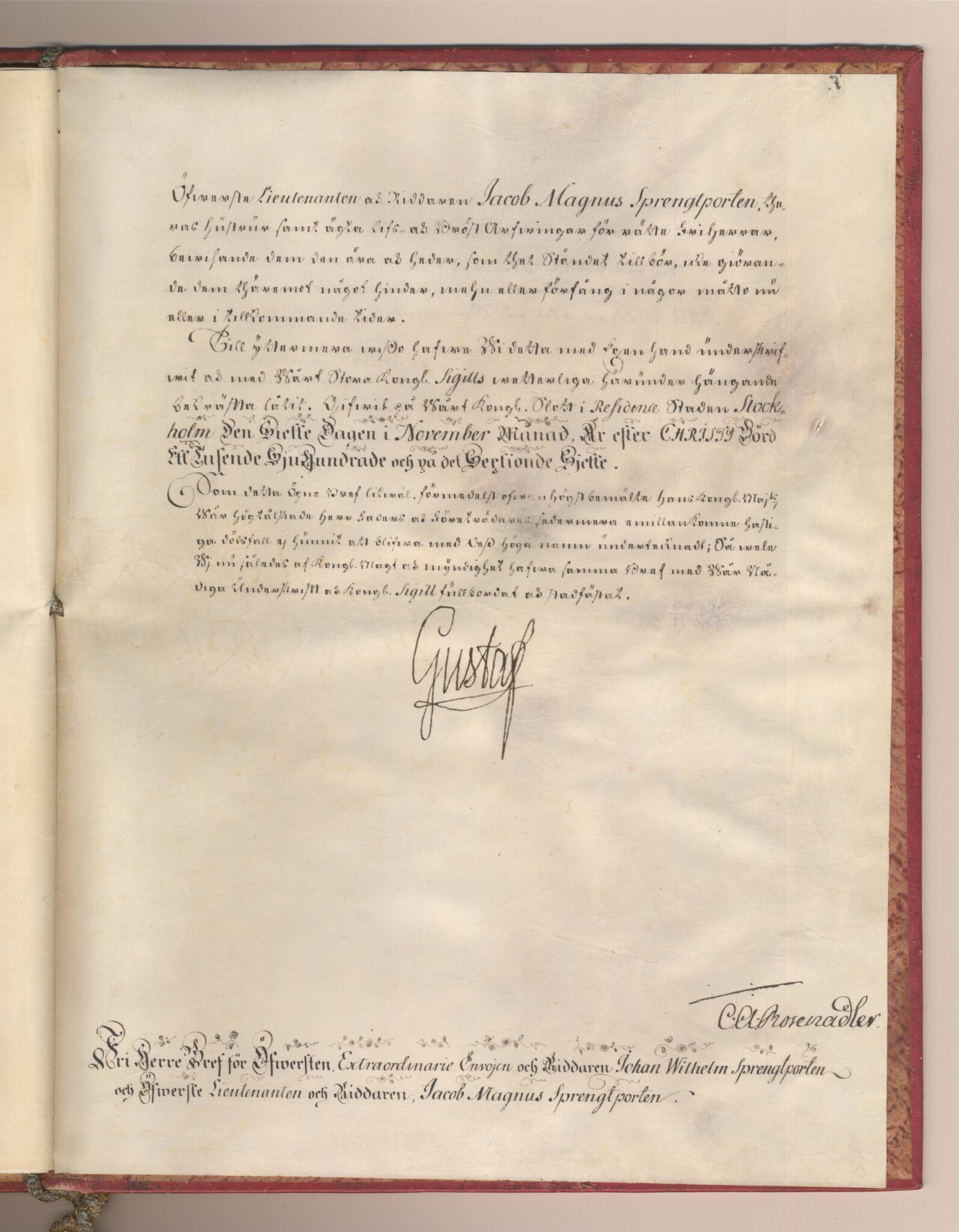 Friherrebrevet i original för utdöda friherrliga ätten Sprengtporten, nr 275.