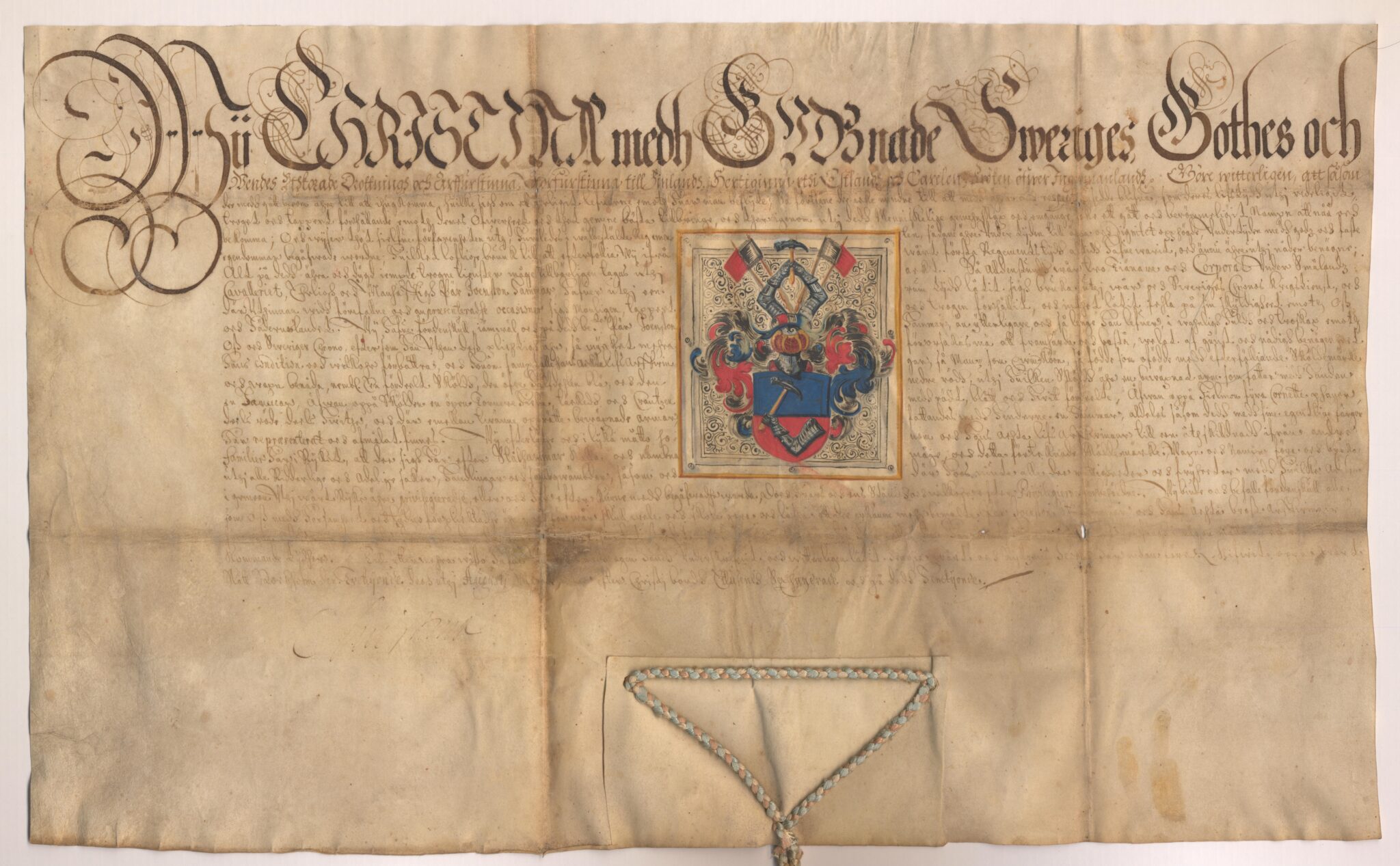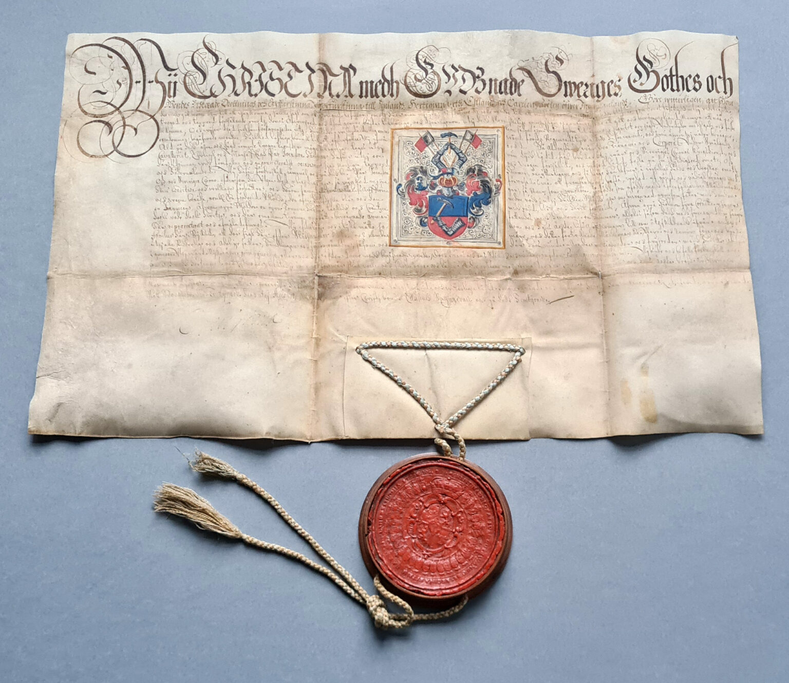 Sköldebrevet i original för adliga ätten Stålhammar, nr 496.