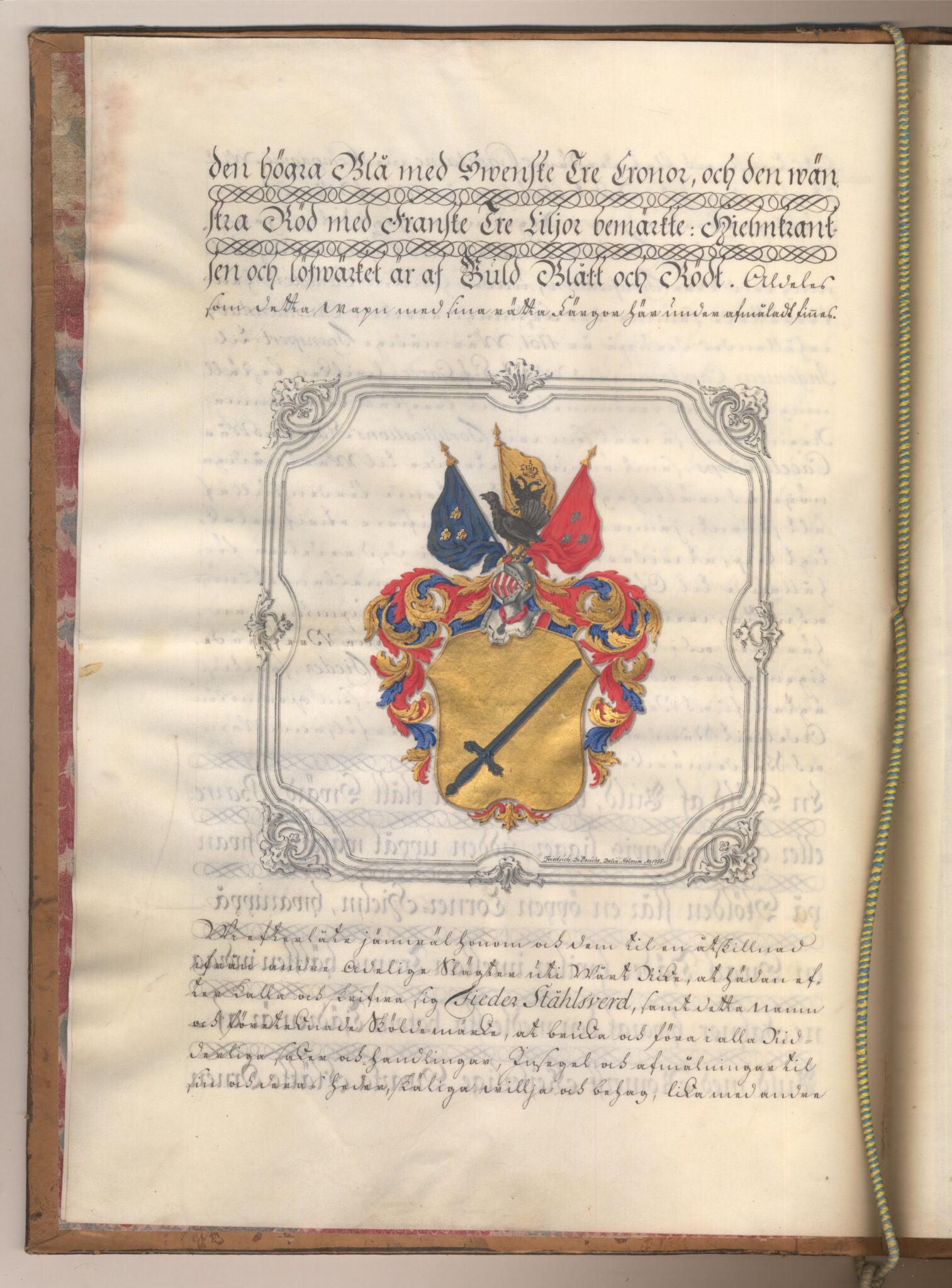 Sköldebrevet i original för utdöda adliga ätten Stålsvärd, nr 1926.