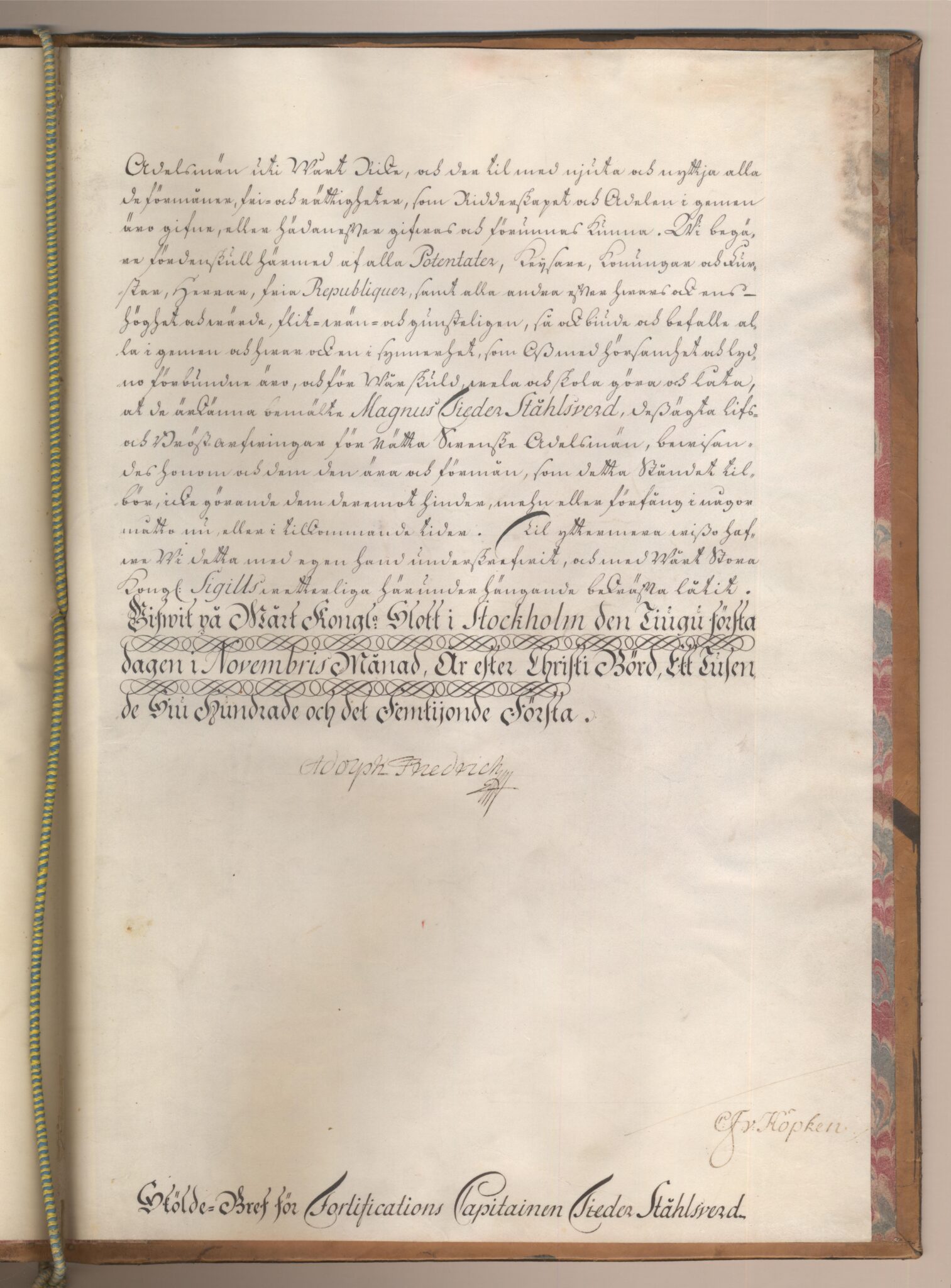 Utnämnd och utfärdat: Adolf Fredrik, Stockholms slott, 1751-11-21.