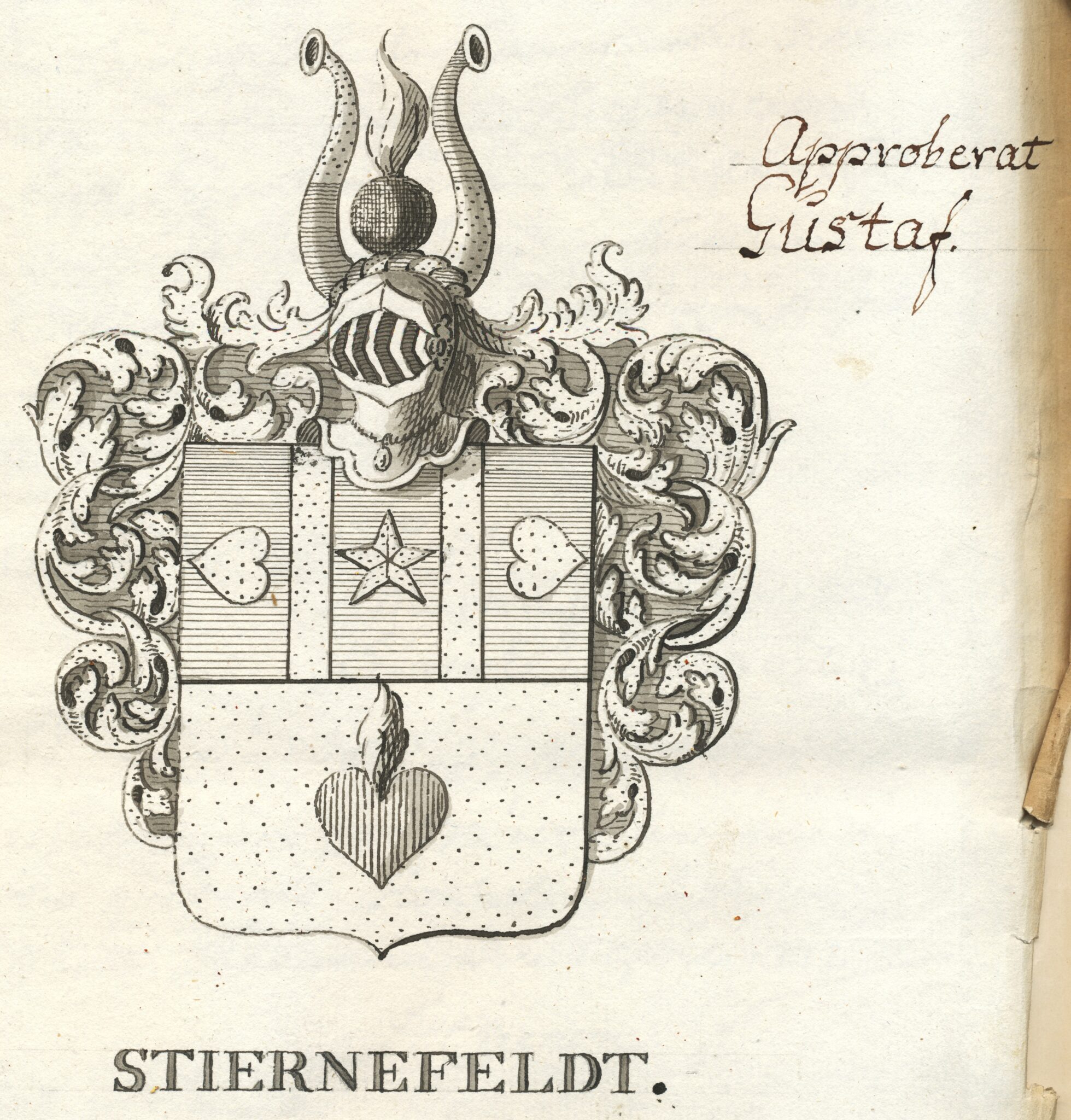 Sköldebrevet i avskrift för utdöda adliga ätten Stiernefelt, nr 2115.