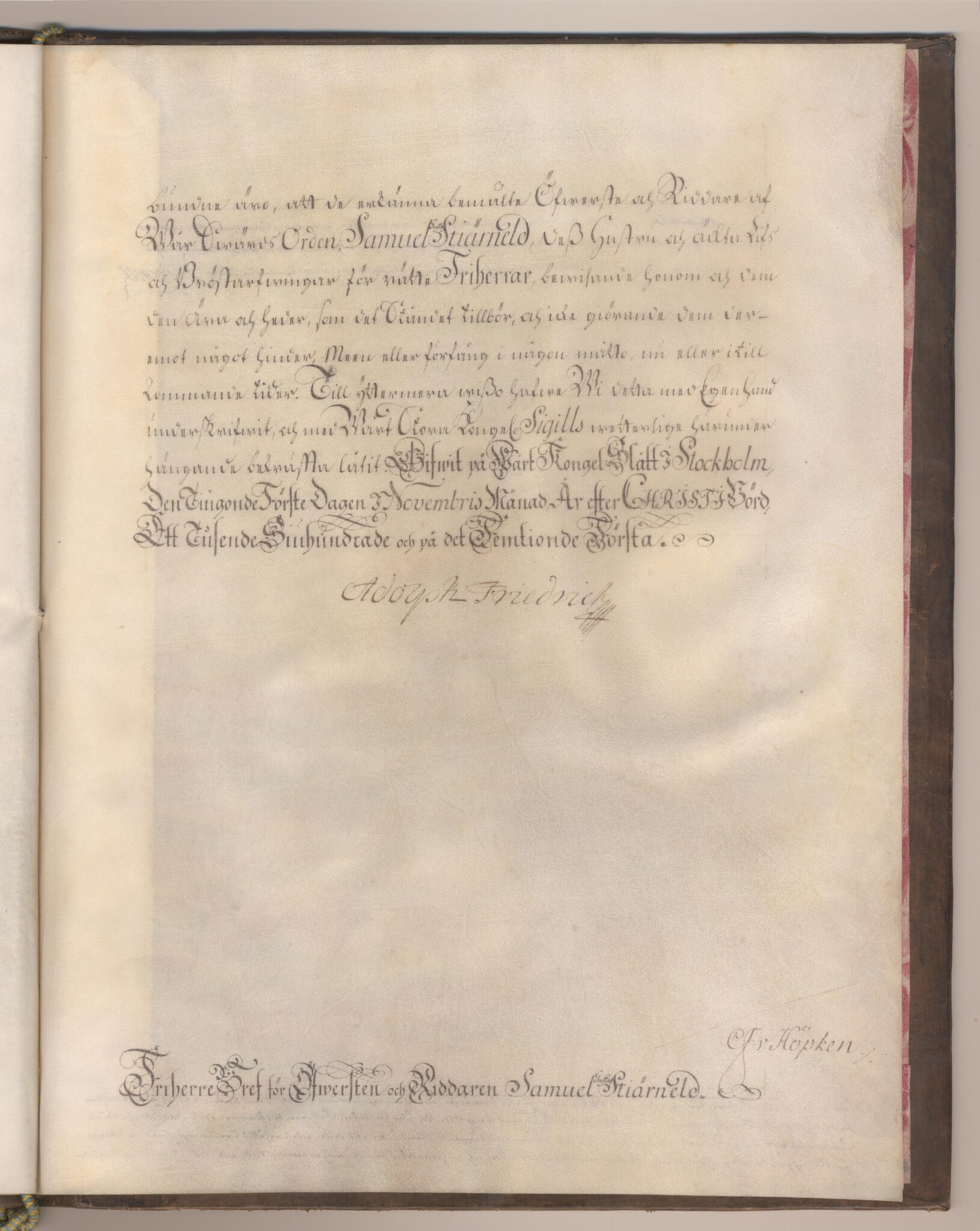 Friherrebrevet i original för utdöda friherrliga ätten Stierneld, nr 236.