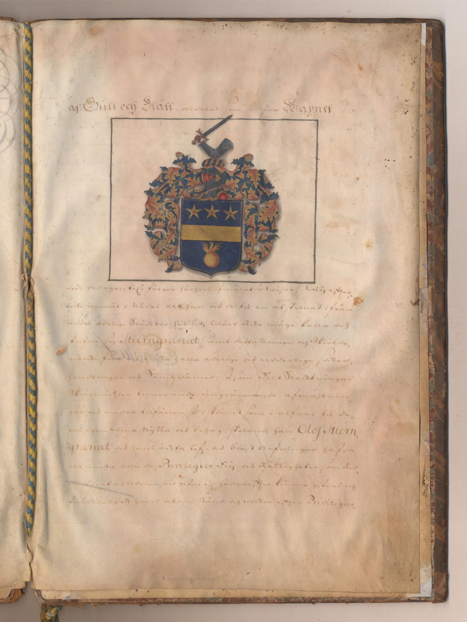 Sköldebrevet i original för adliga ätten Stierngranat, nr 1506.