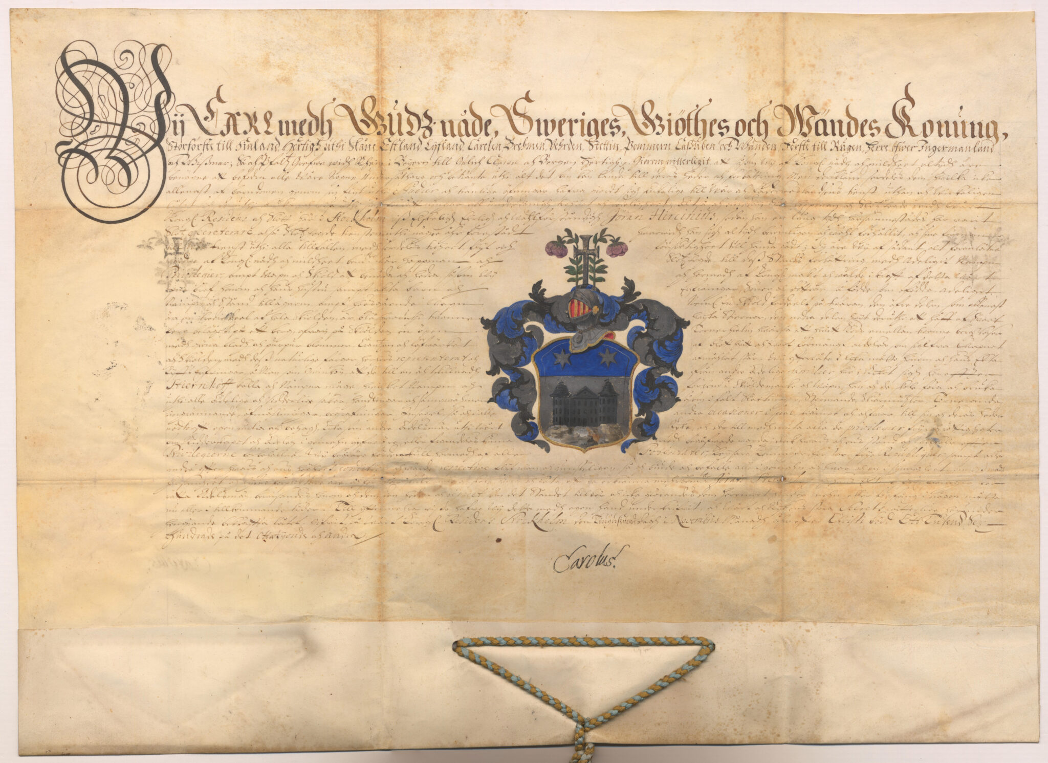 Sköldebrevet i original för utdöda adliga ätten Stiernhoff, nr 1039.