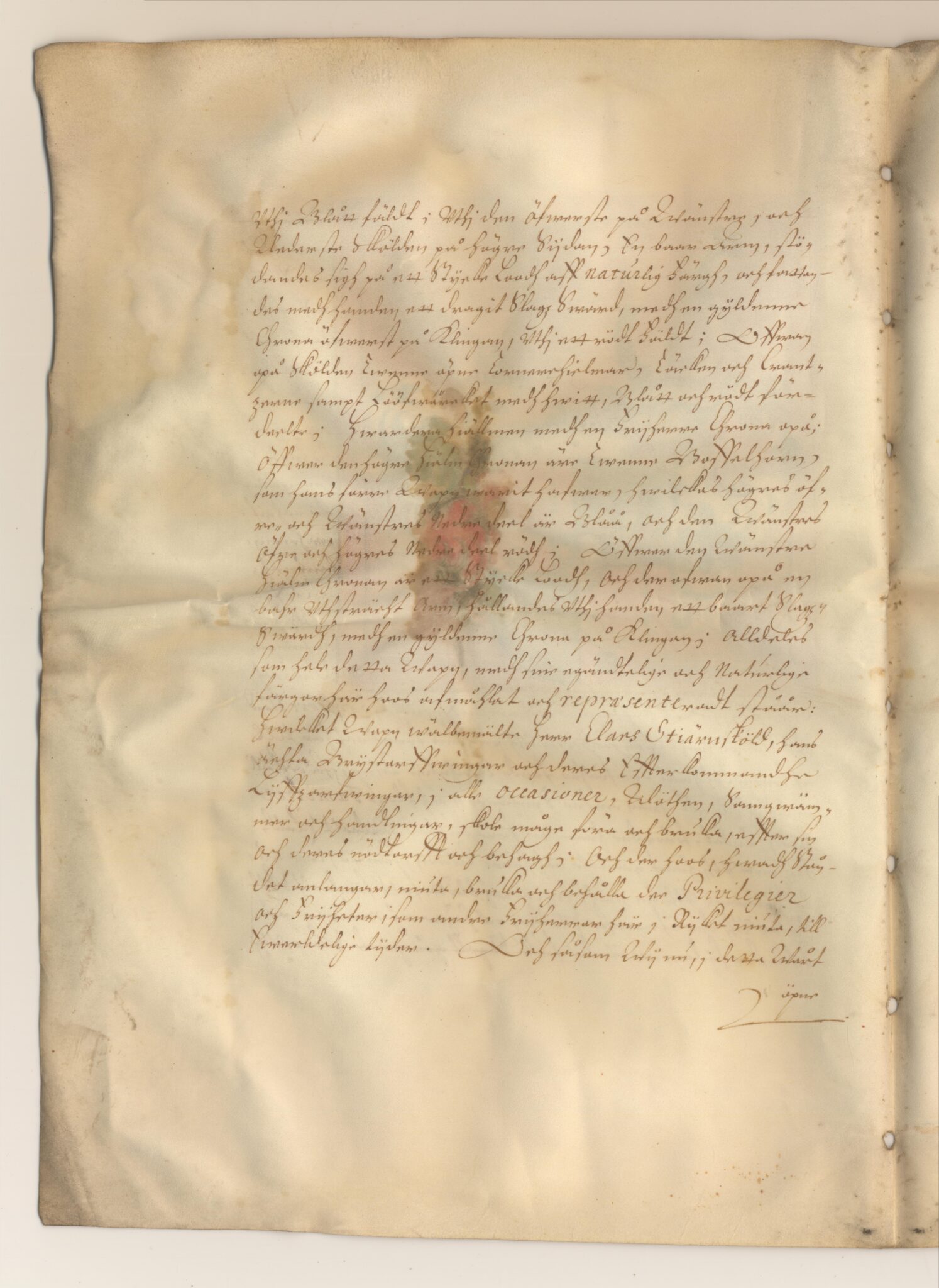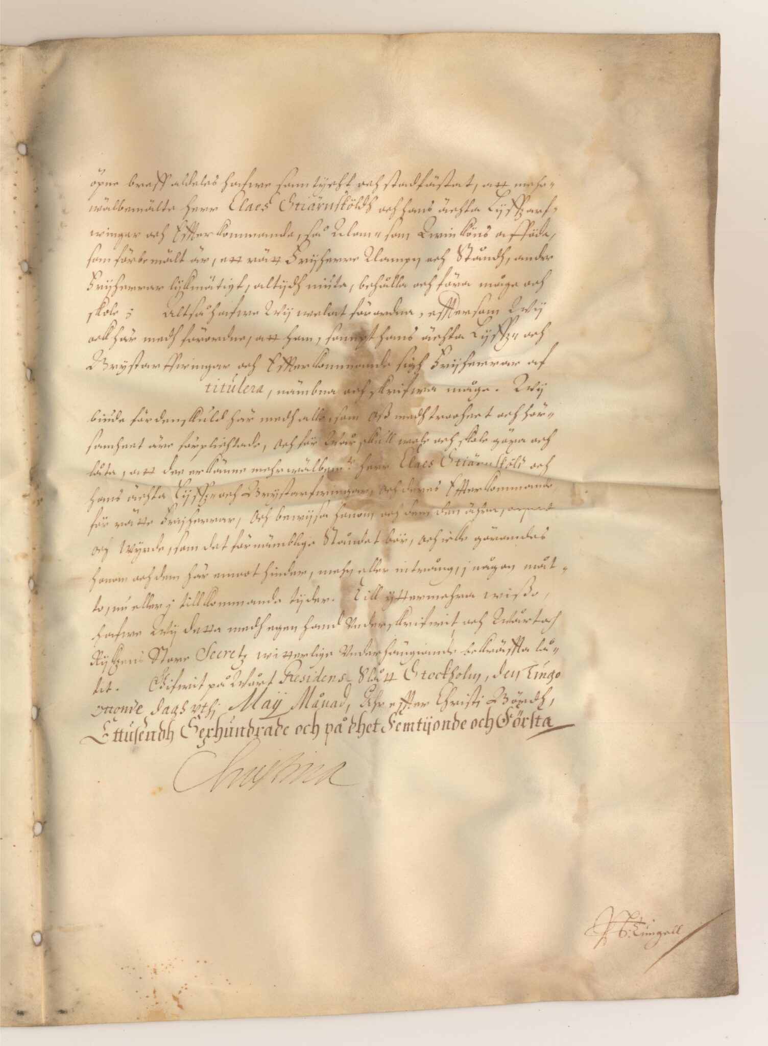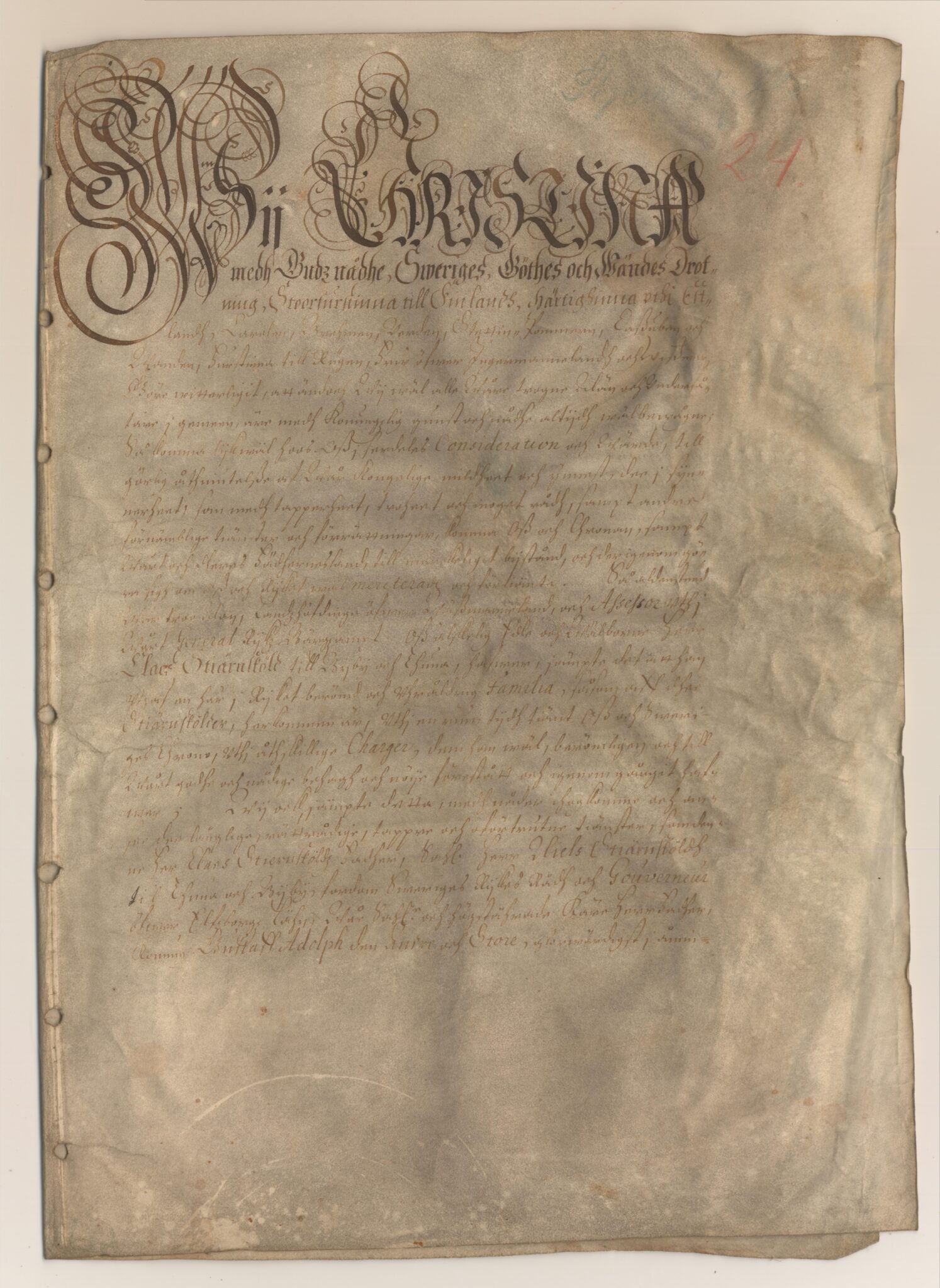 Friherrebrevet i original för utdöda friherrliga ätten Stiernsköld, nr 24.