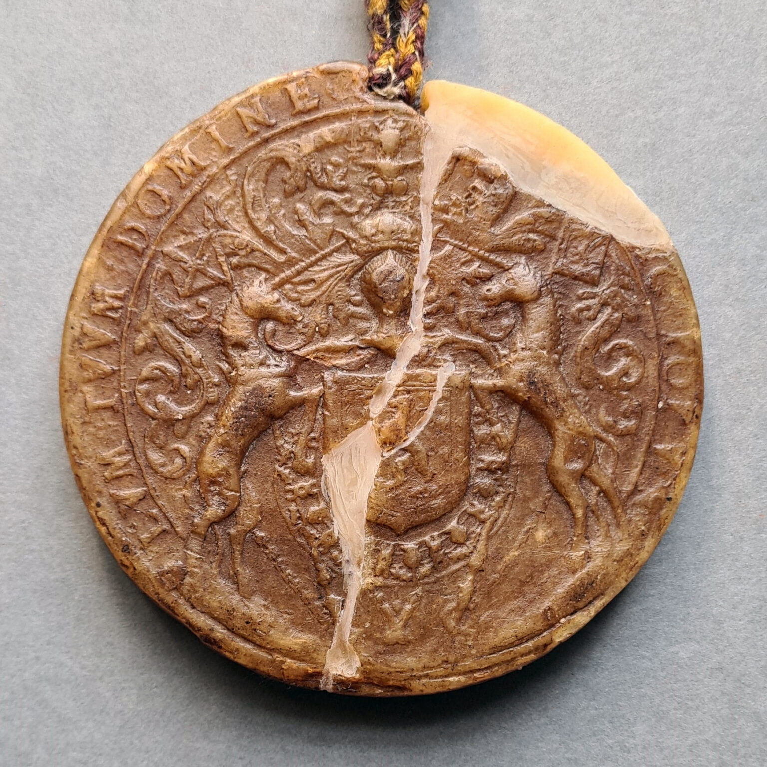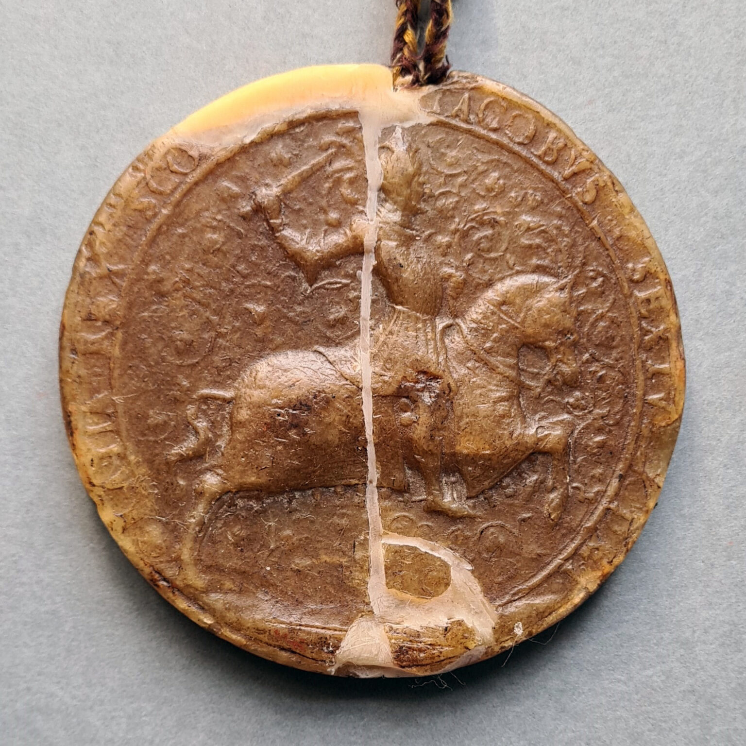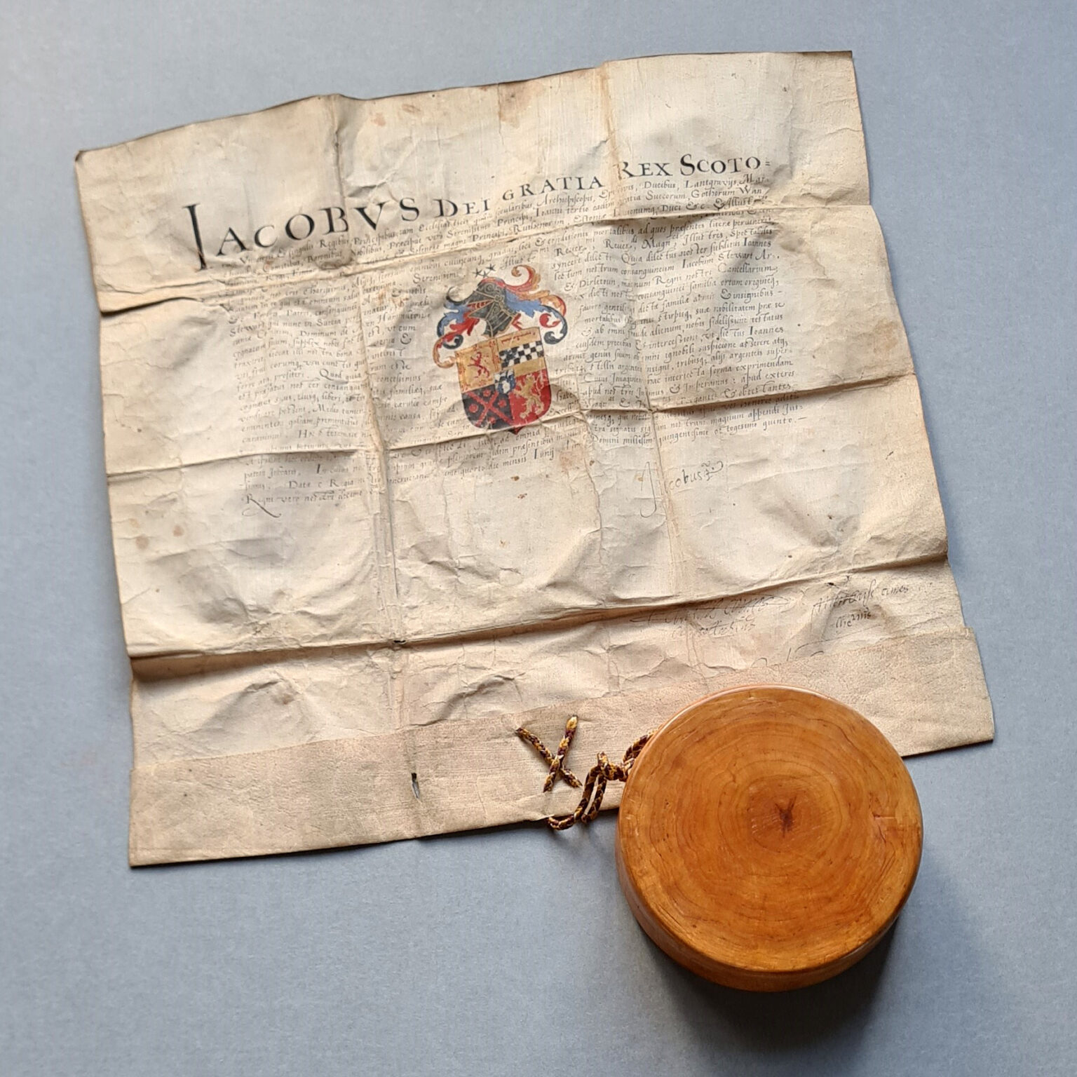 Utnämnd och utfärdat: Jakob VI av Skottland, Vårt slott Sancruciana (Holyrood House i Edinburgh), 1585-06-14.