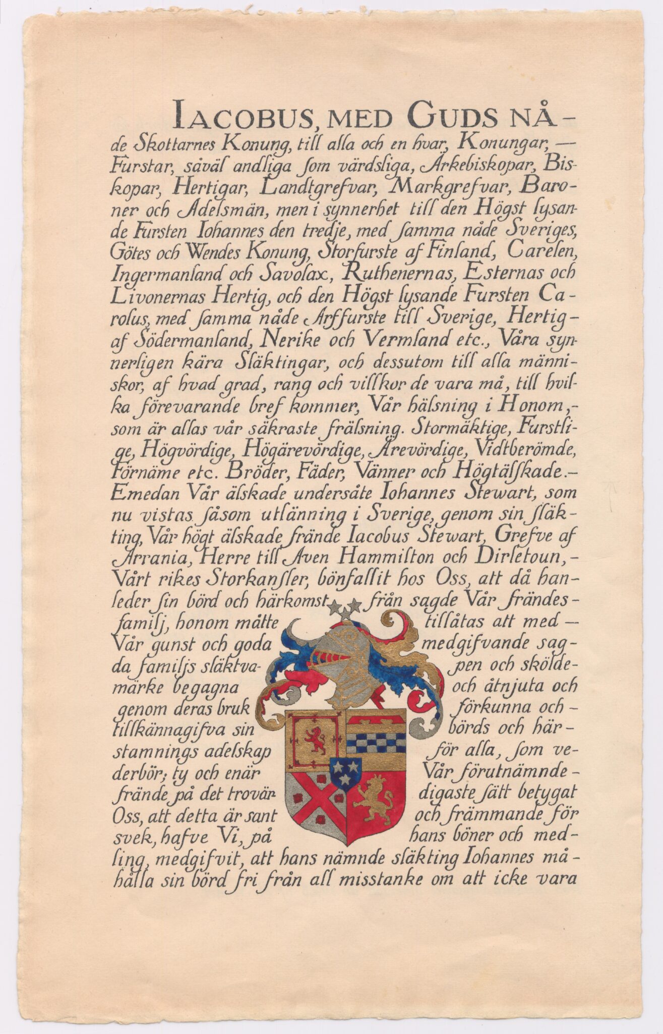 Skotskt konfirmationsbrev på adelskap för adliga ätten Stuart, nr 86.