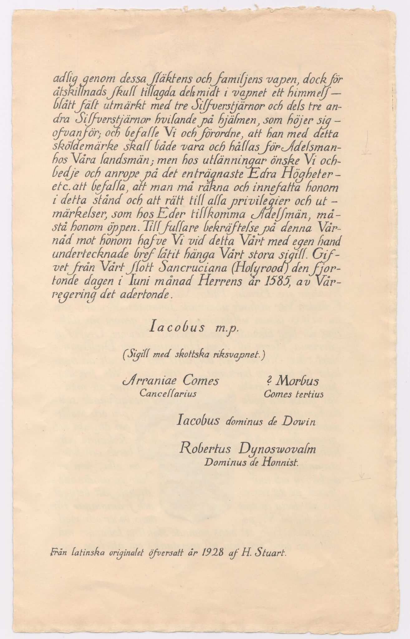 1. Avskrift från latin till svenska signerad H. Stuart 1928.