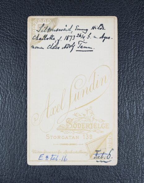 Tamm, Emmy Hilda Charlotta (LILY), född Silfverswärd, nr 184. Född 1873-04-26. Död 1900-06-26.