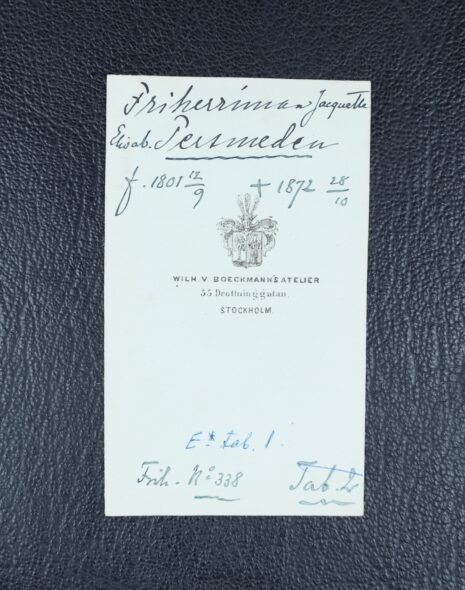 Tersmeden, JACQUETTE Elisabet, född Tersmeden, nr 1940 C. Född 1801-09-12. Död 1872-10-28.