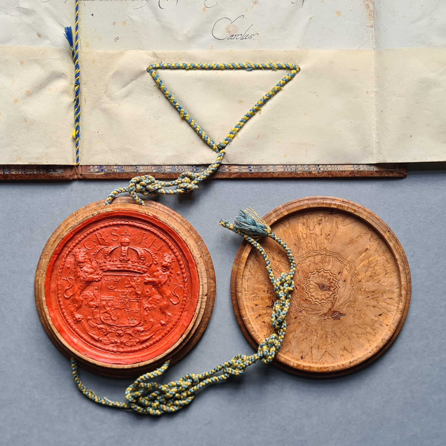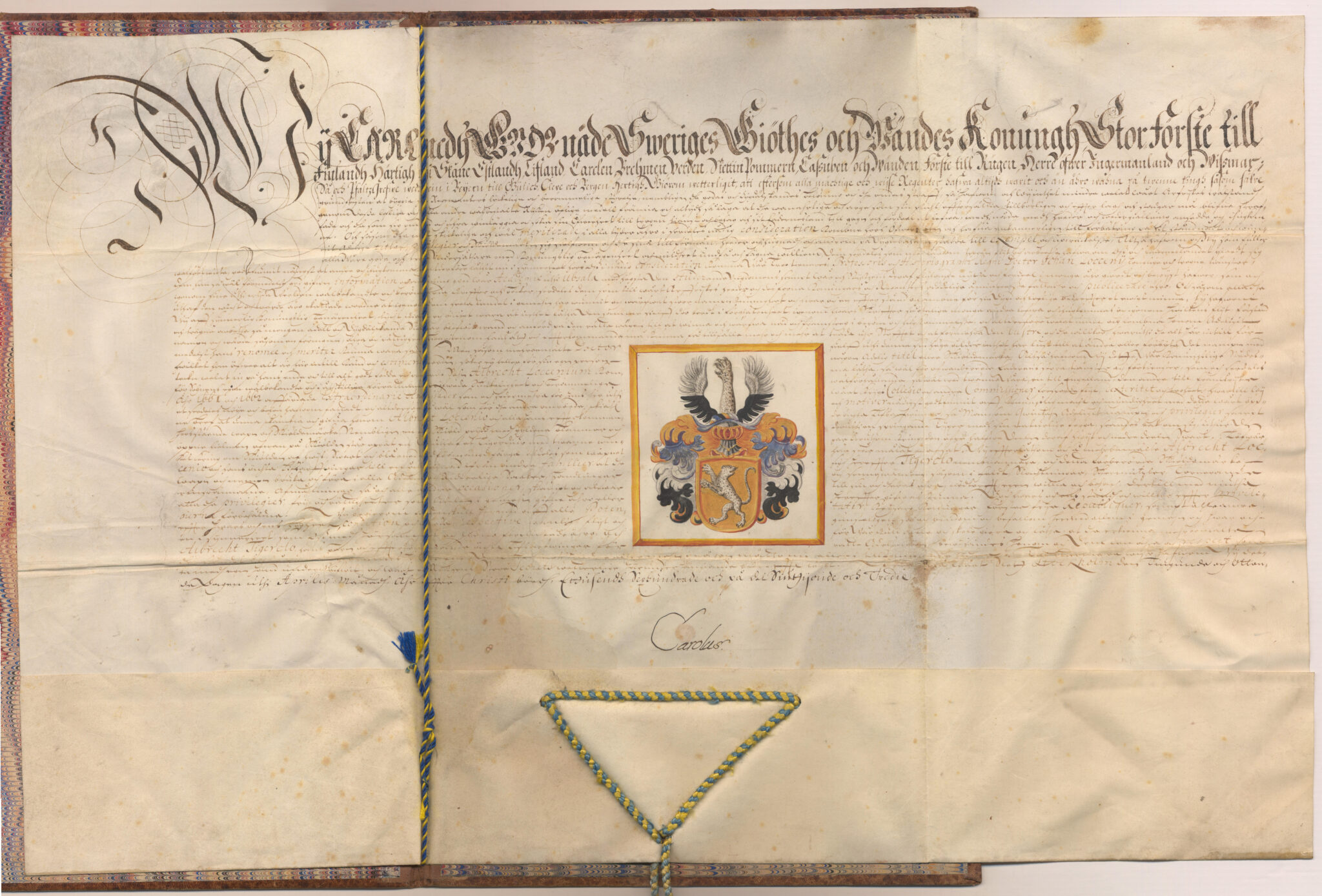 Sköldebrevet i original för utdöda adliga ätten Tigerklou, nr 844.