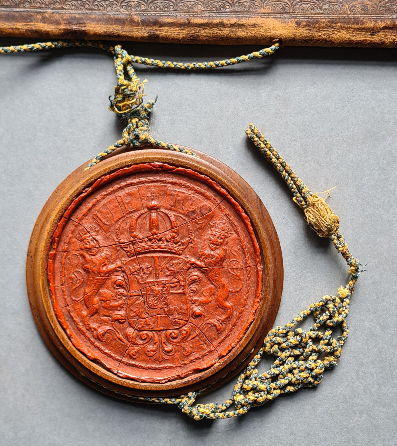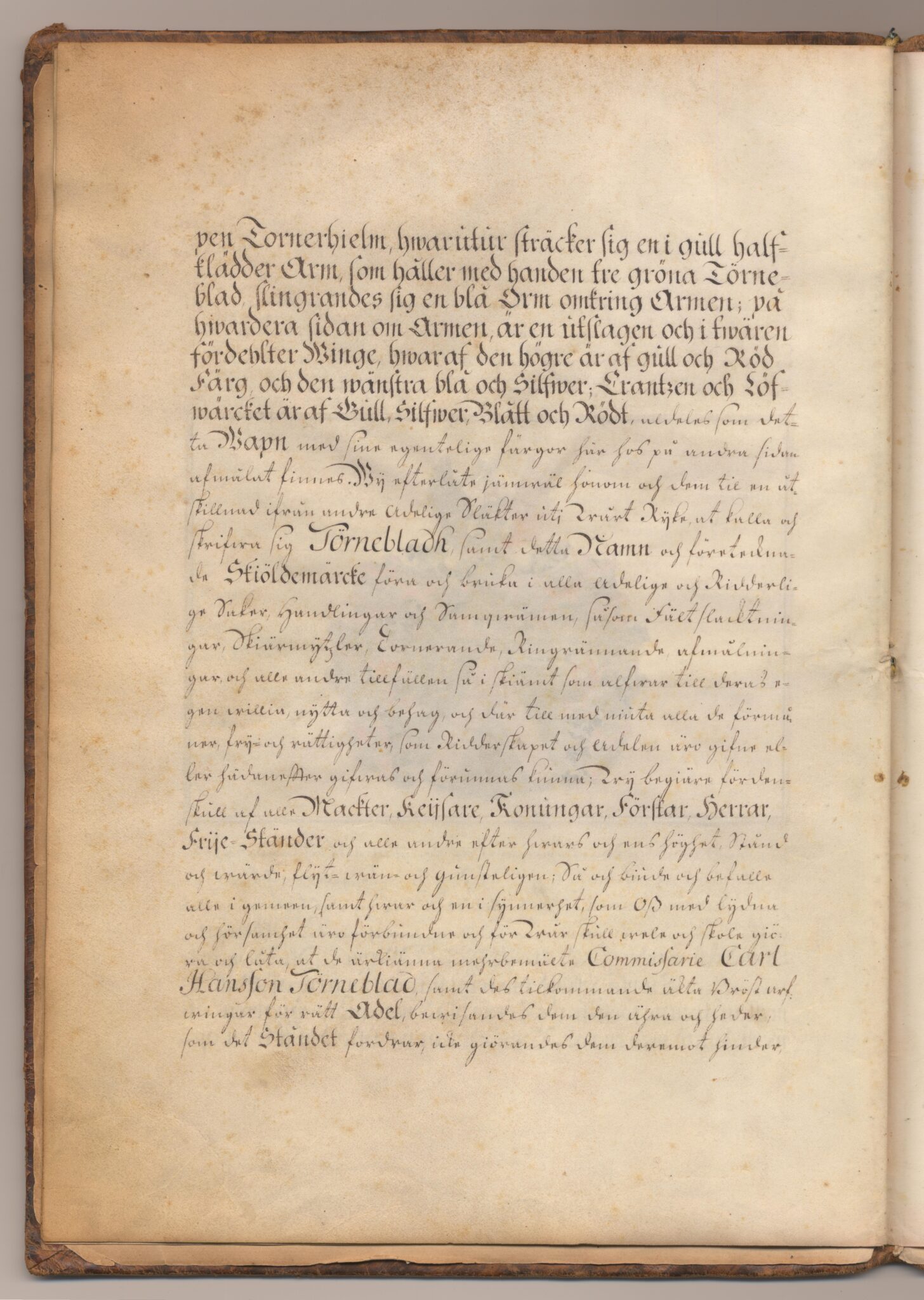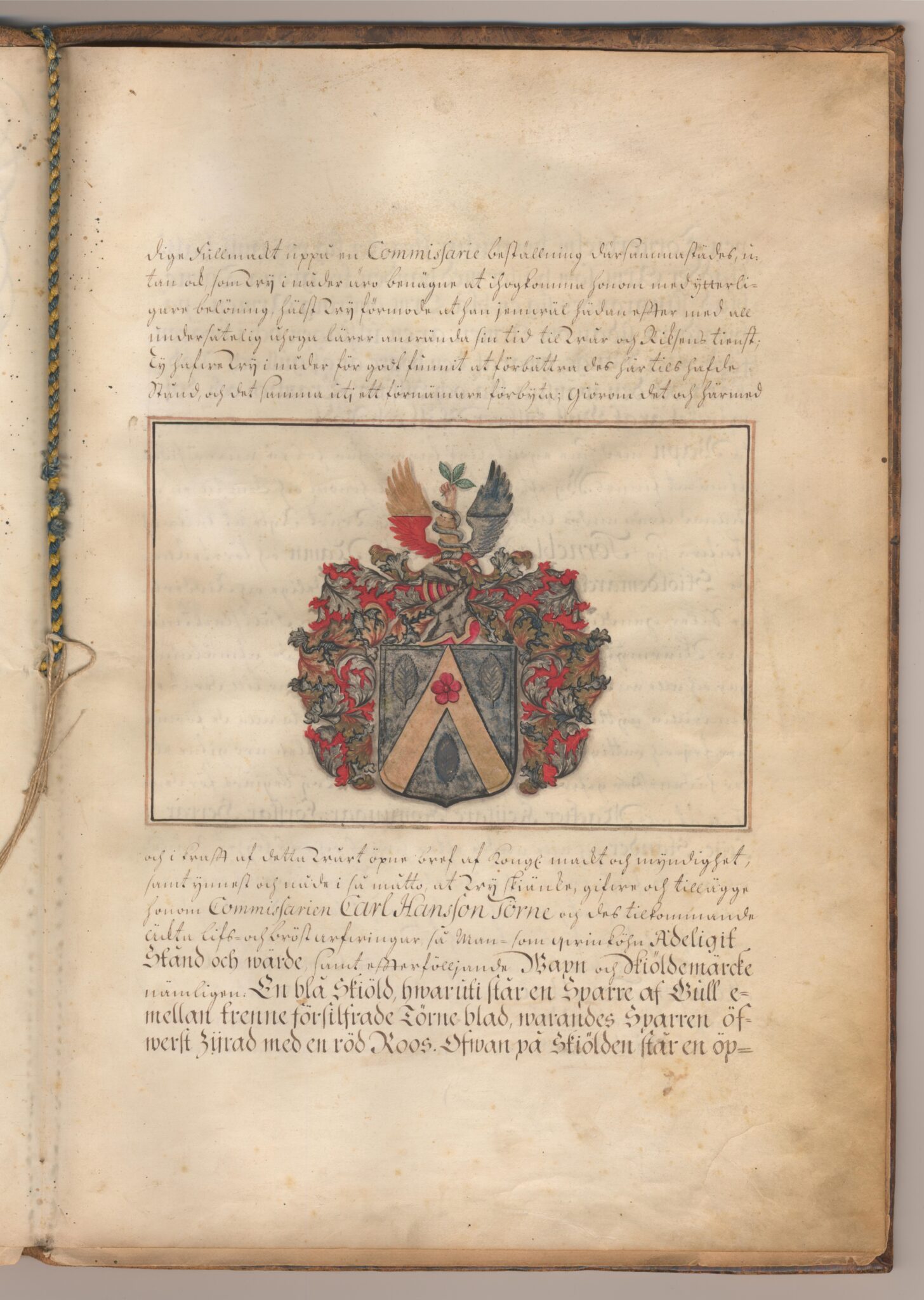 Sköldebrevet i original för utdöda adliga ätten Törnebladh, nr 1702.